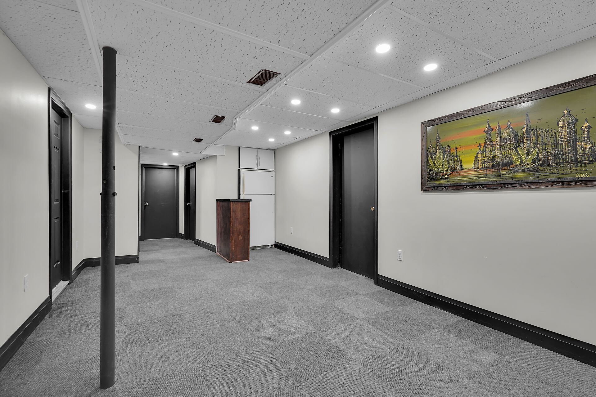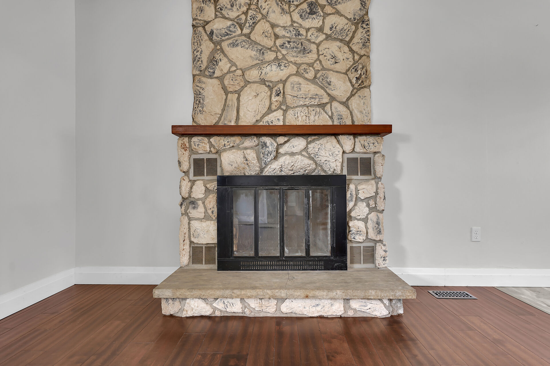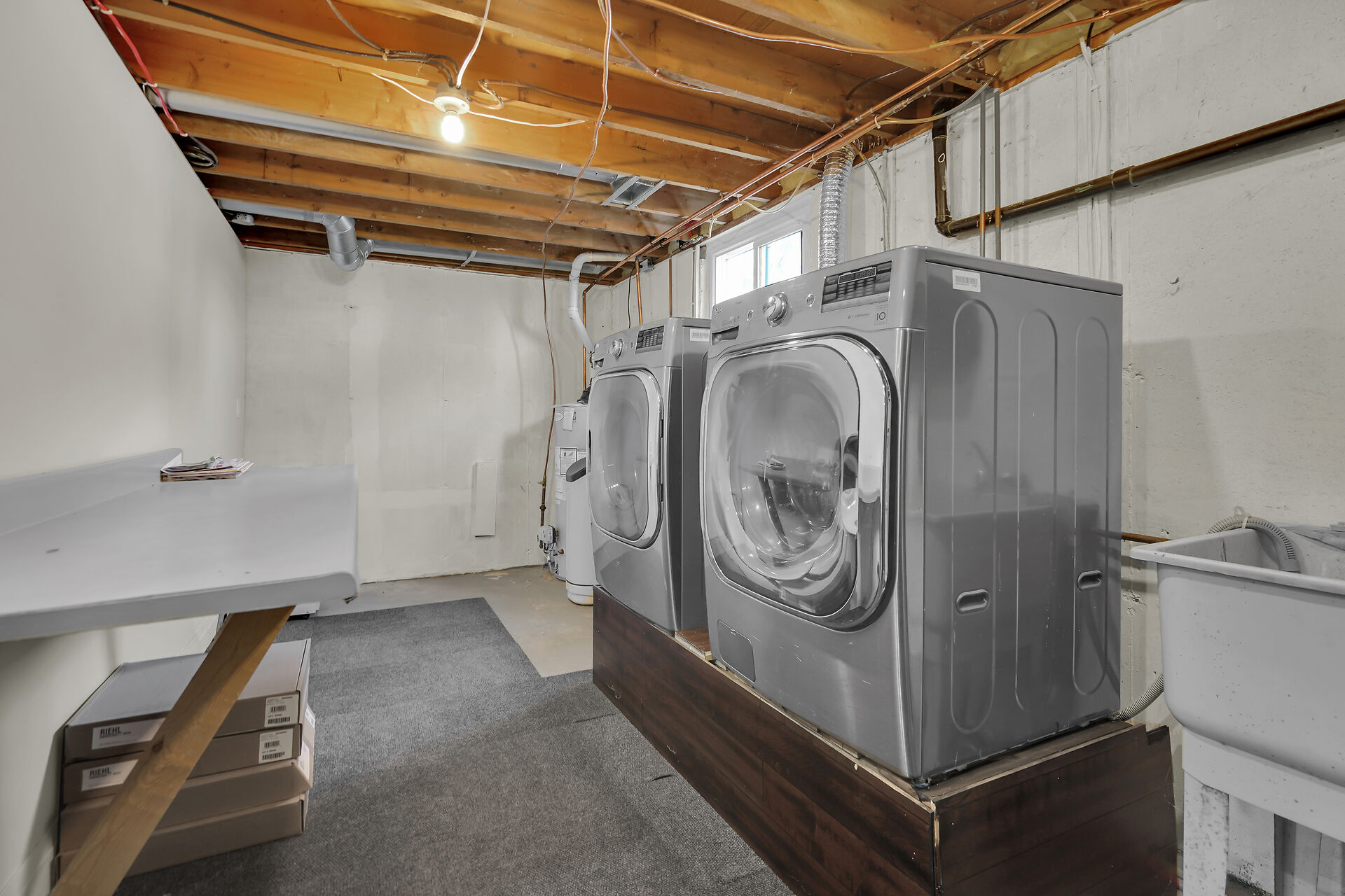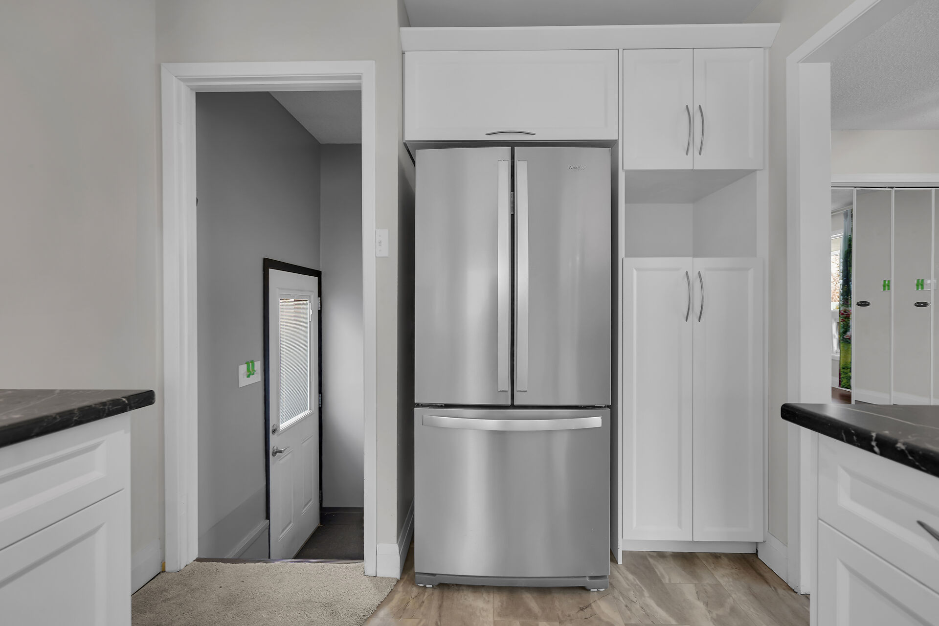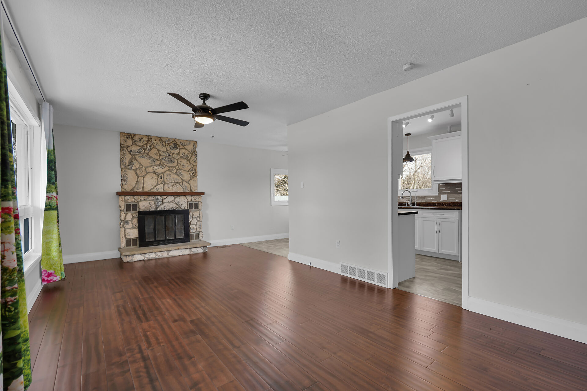 A great little country, cozy brick, home with big garage/shop on not too big of lot, private and short drive to City/Shopping - Updated! The garage is about 25 x 40 ft estimate with concrete floor, hydro and single garage door, rough in for wood stove- plus might fit two cars in tandem! The home has the covered front porch; updated flooring in living room with brick fireplace (as-is); open to dining area then updated kitchen with cabinets & appliances & off the kitchen is convenient door to rear yard. There are 3 carpeted bedrooms on the main. Full updated bathroom with glass doors. The lower level has family room with ba
