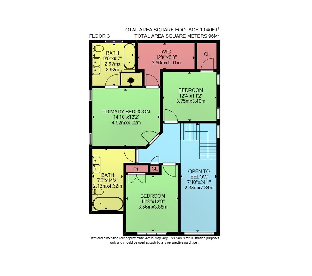 Floor 2: 969 sq ft, Floor 3: 1040 sq ft, Floor 1: 904 sq ft