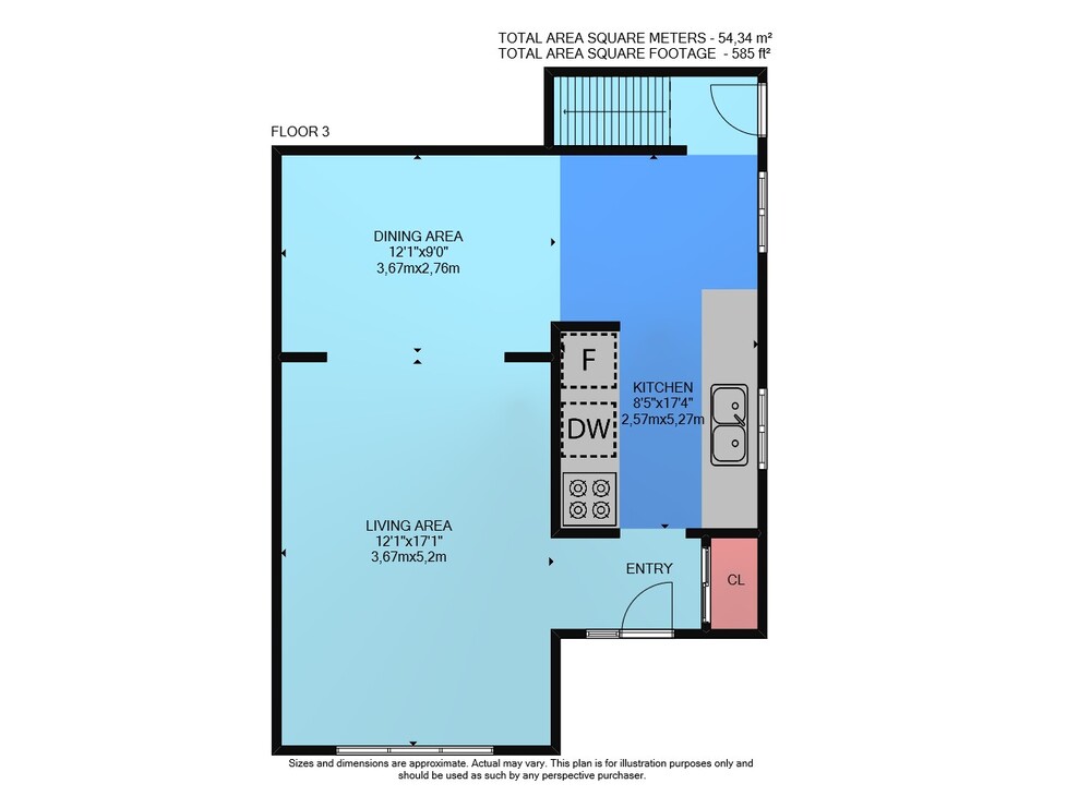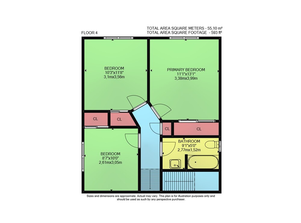 Floor 3: 585 sq ft, Floor 4: 593 sq ft, Floor 2: 493 sq ft, Floor 1: 505 sq ft