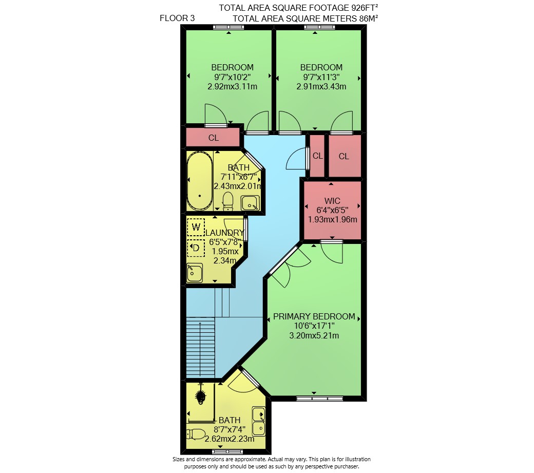 Floor 2: 678 sq ft, Floor 3: 926 sq ft,