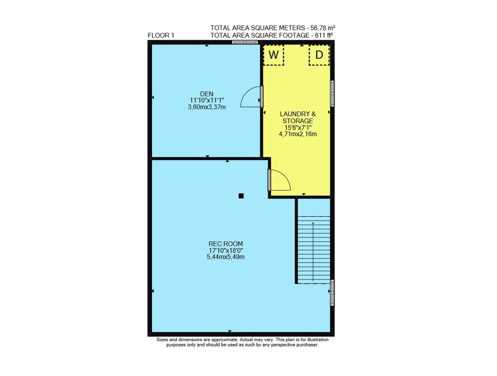 Floor 1: 611 sq ft