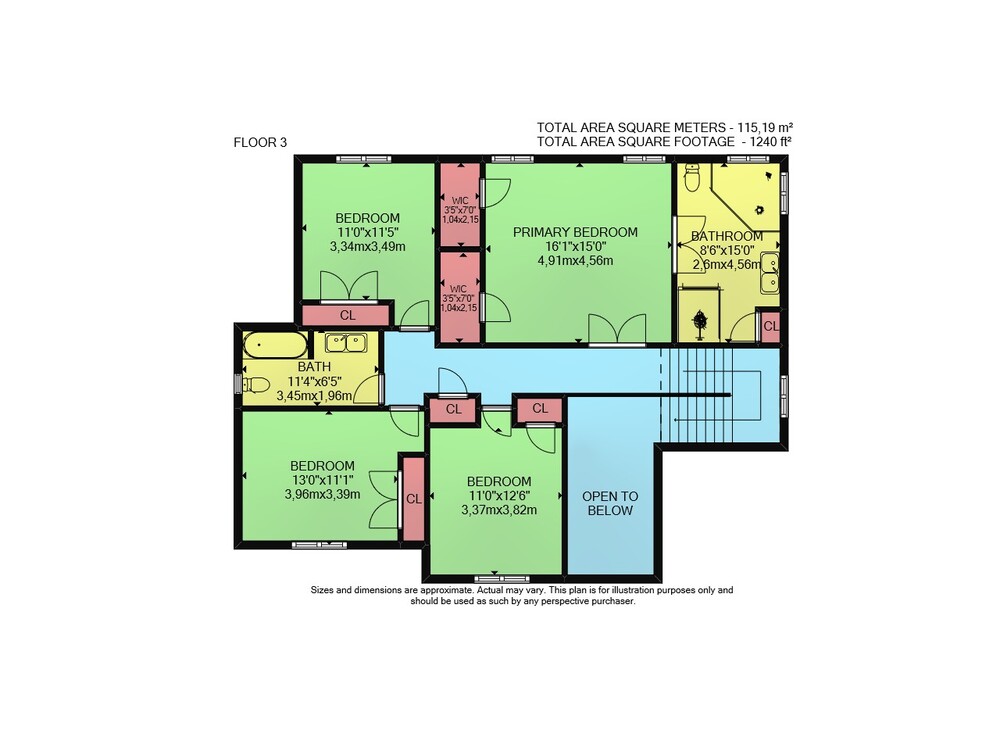 Floor 2: 1540 sq ft, Floor 3: 1240 sq ft,