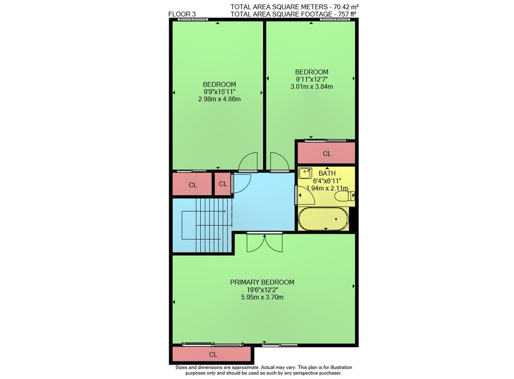 Floor 2: 606 sq ft, Floor 3: 757 sq ft,