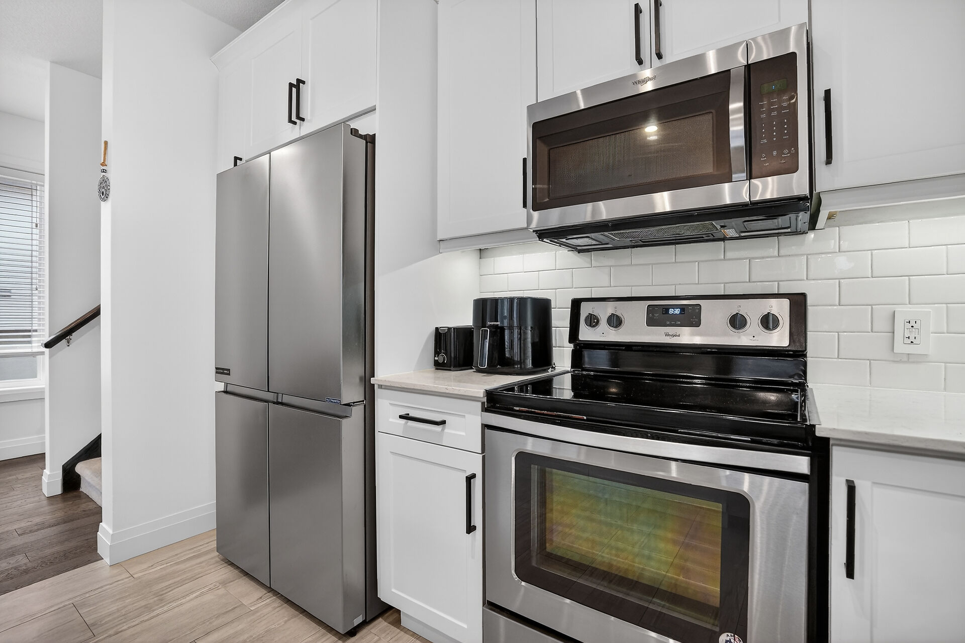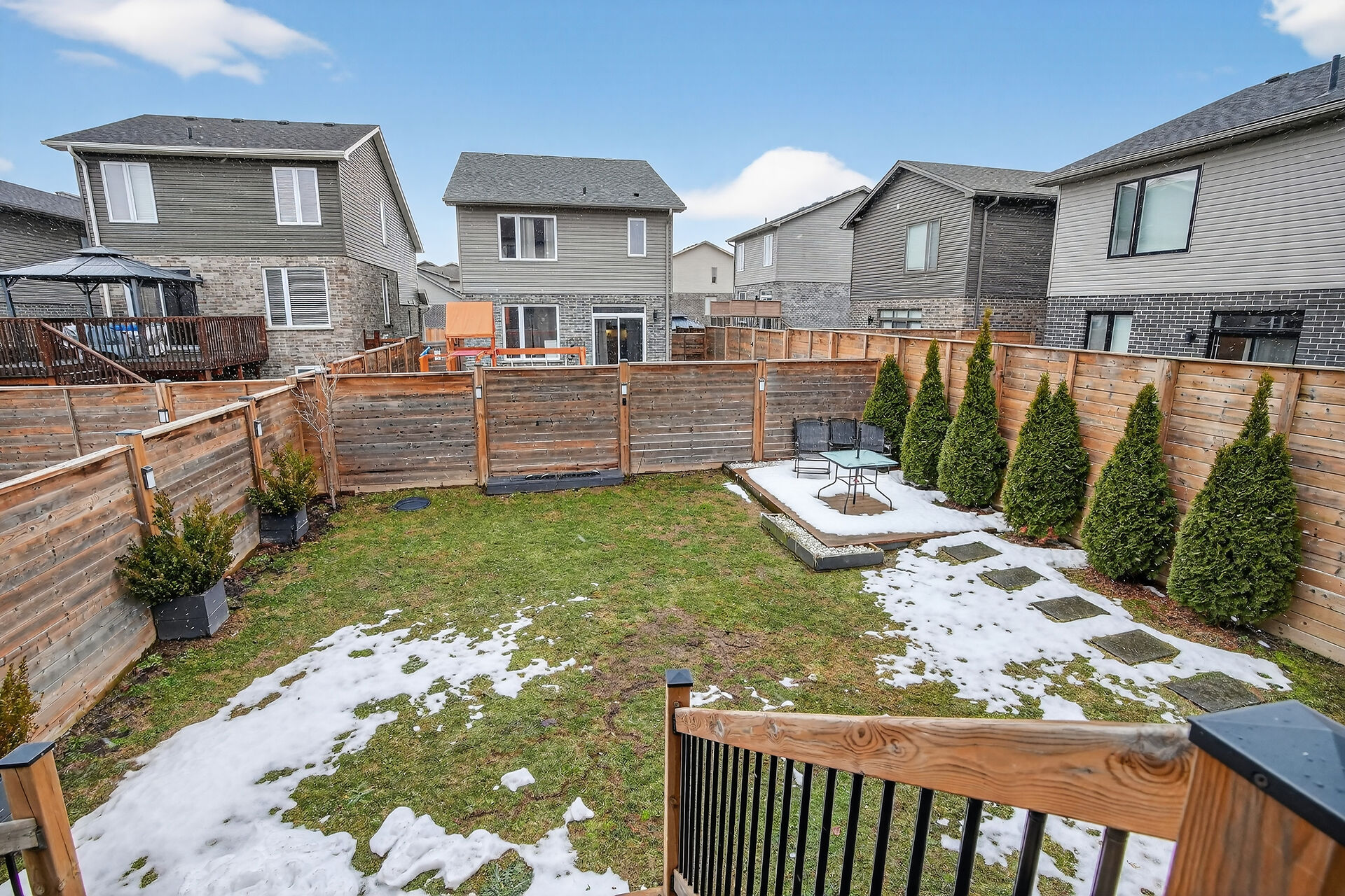Discover this multi-level house. This thoughtfully crafted residence comfort with elegant design. Step inside the inviting foyer with 2 pc. Bath, welcomes you into a lower-level family room, filled with natural light from a lookout windows & 3 pc. Bath, making it ideal for guests/extended family. Main floor is cheerful & welcoming offering sun-filled living room, dining room & functional kitchen quartz countertops, steel appliances & glass door to fully fenced backyard. Second level is dedicated to comfort and convenience, highlighted by a primary bedroom,3 pc. Bath, laundry room on this level. Third level offers two bedrooms & 3 pc. Bath, excellent space for family members or home office setup.