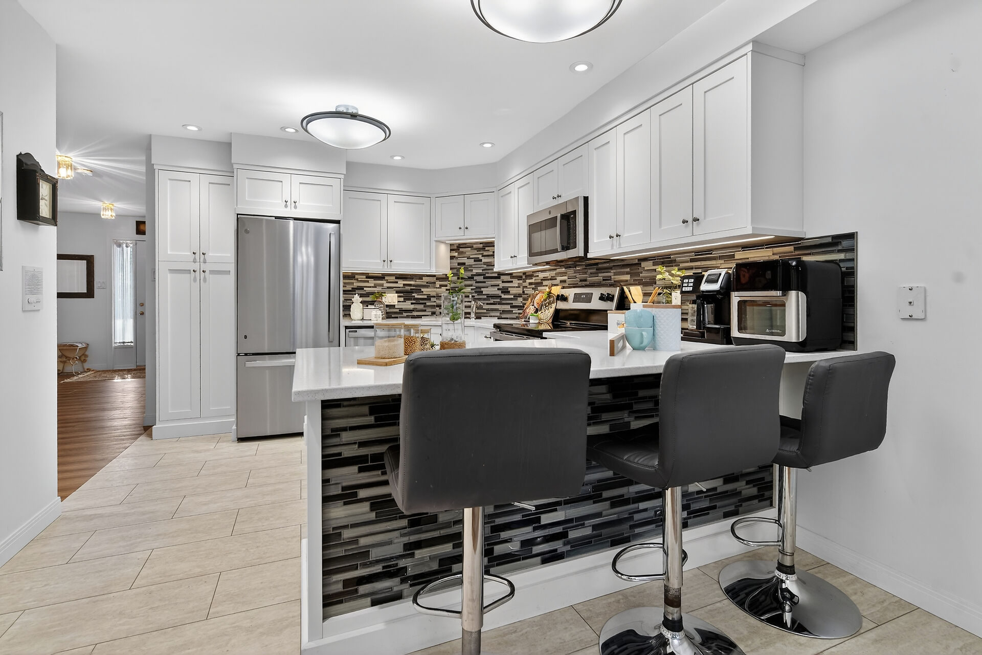 Welcome to this beautifully updated two-storey townhouse tucked awayon a quiet cul-de-sac in the heart of Northridge. Surrounded by mature trees and exceptional privacy, this home offers direct access to a scenic 5.2 km trail system along the Thames River-perfect for walking, running, or cycling. The bright, south-facing entryway opens into a warm and inviting living room highlighted by a contemporary gas fireplace. The renovated kitchen(2023) features sleek cabinetry, quartz countertops, a glass tile backsplash, and stainless steel appliances, with the adjoining dinette leading to a private L-shaped deck nestled among the trees. As a middle unit, this home benefits from natural shade.