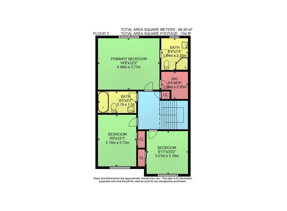 Floor 2: 589 sq ft, Floor 3: 744 sq ft, Floor 1: 581 sq ft