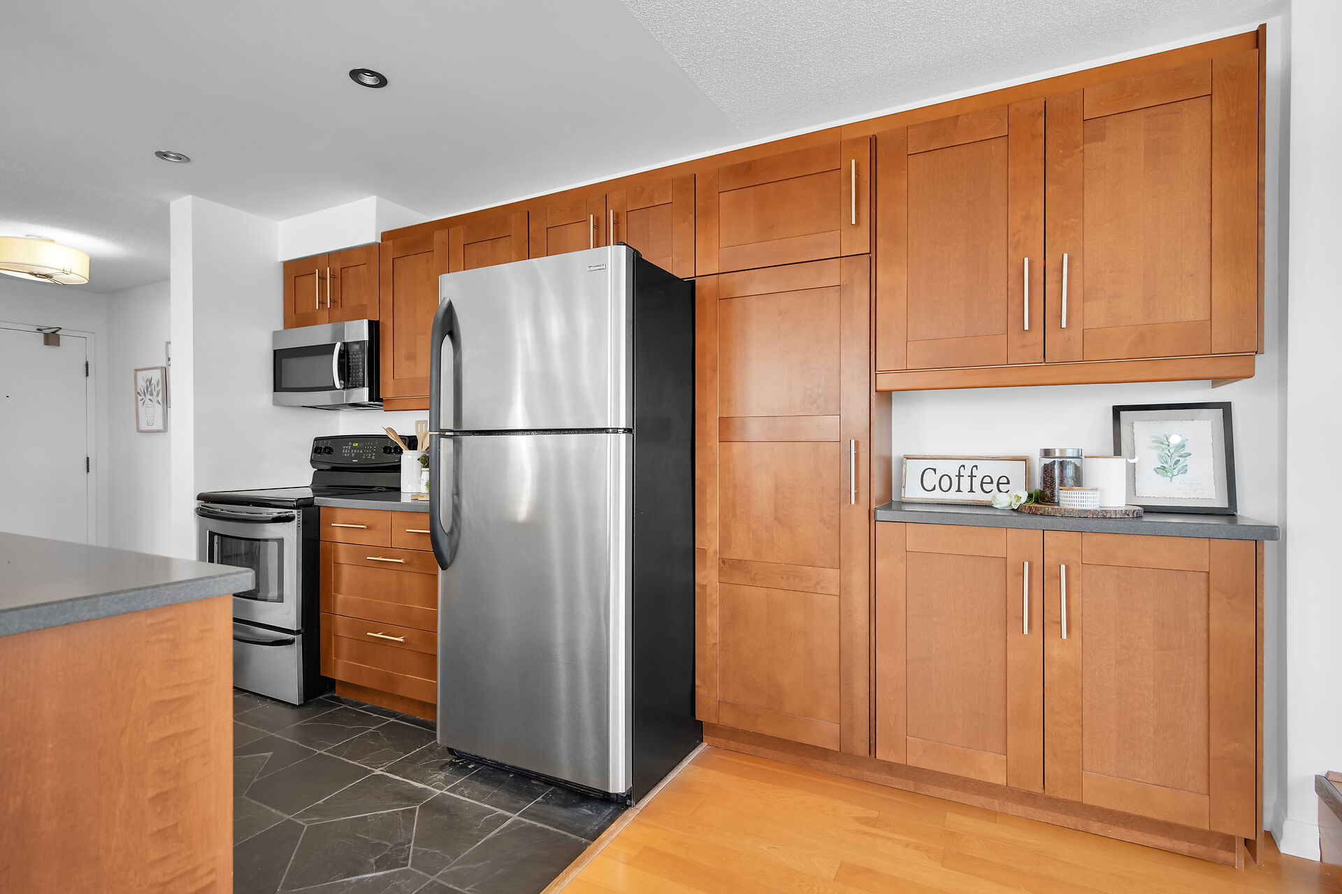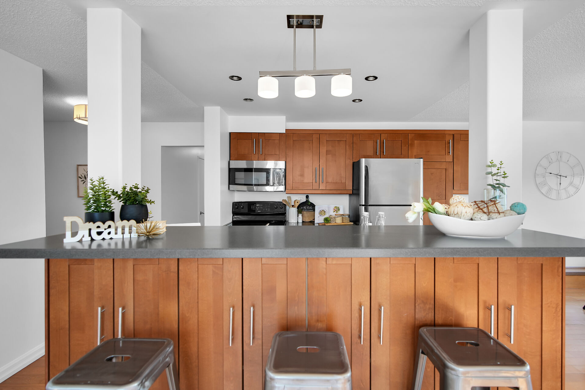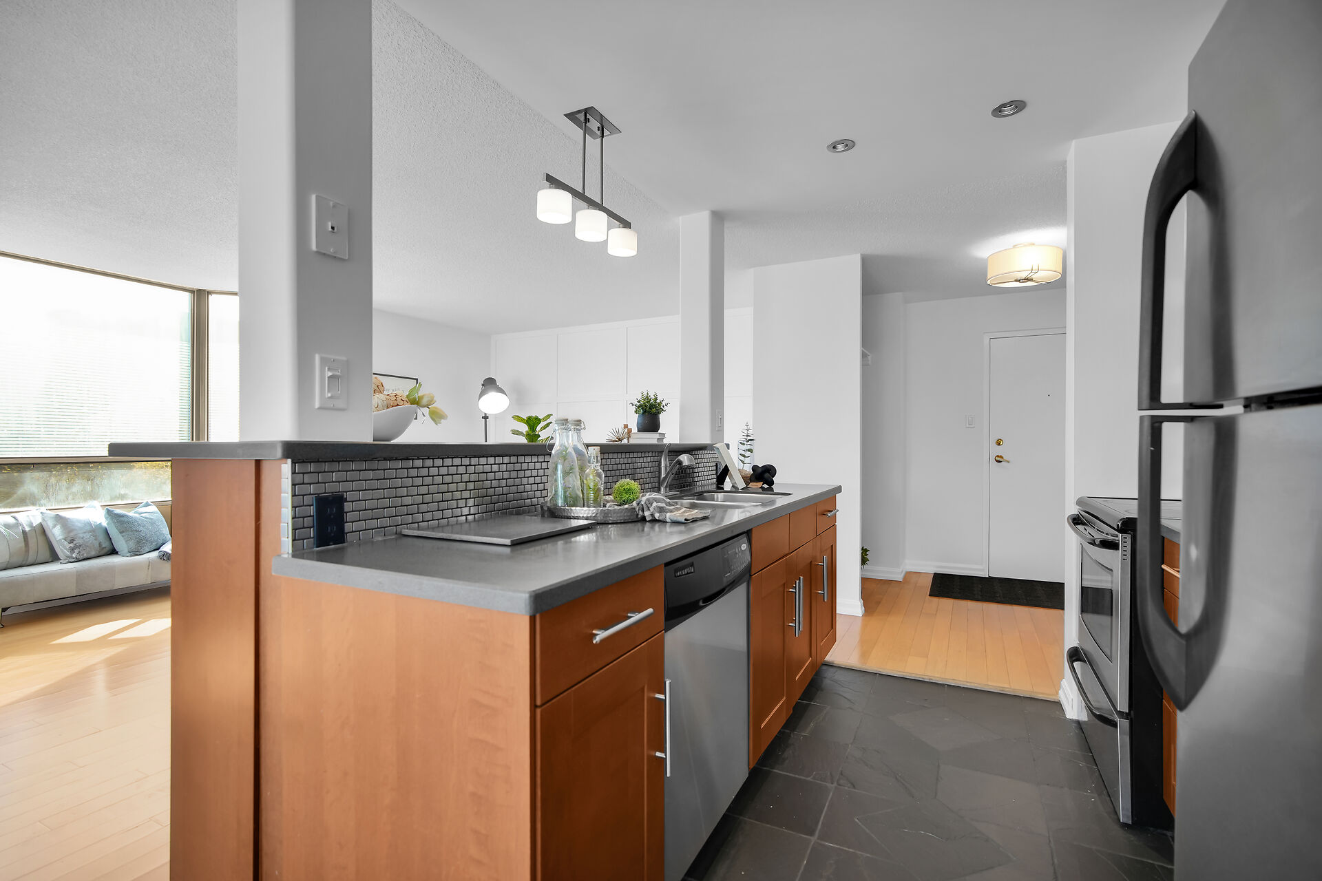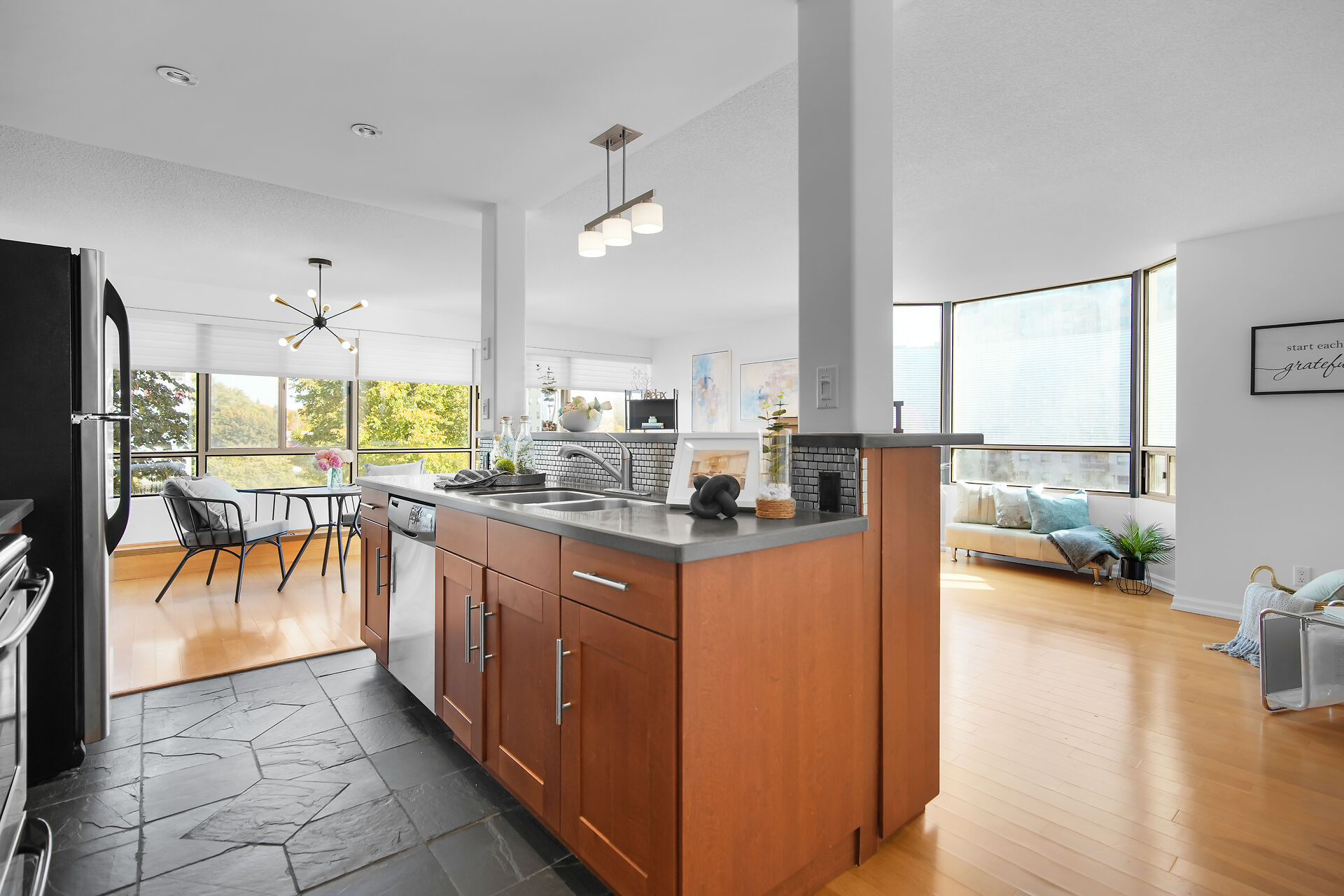 Well maintained 2 bed, 1.5 bath unit. Open concept kitchen and living room. Qualtz counter top, lots of cabinets for extra storage, tiled kitchen floor. Furnace and central air, in-suite laundry. Close to Wester University, downtown, Costco, T&T, restaurants, banks and shopping and lots of amenities. Move in ready!