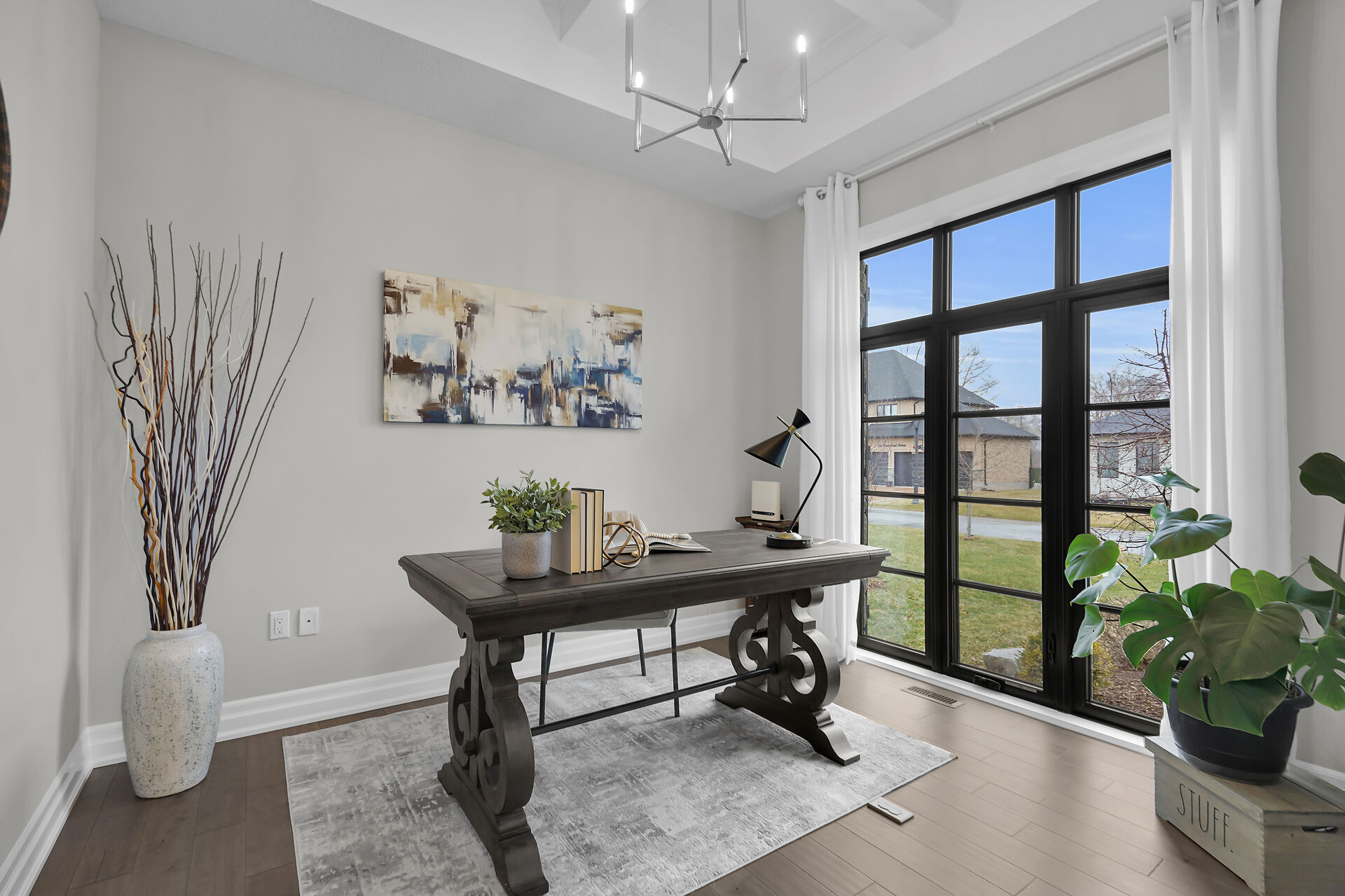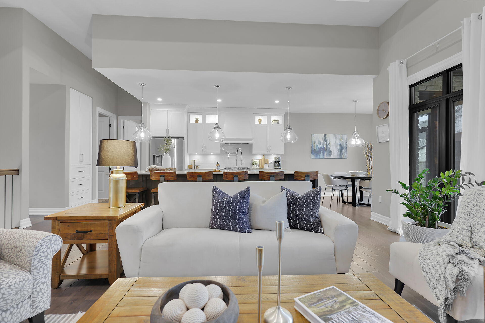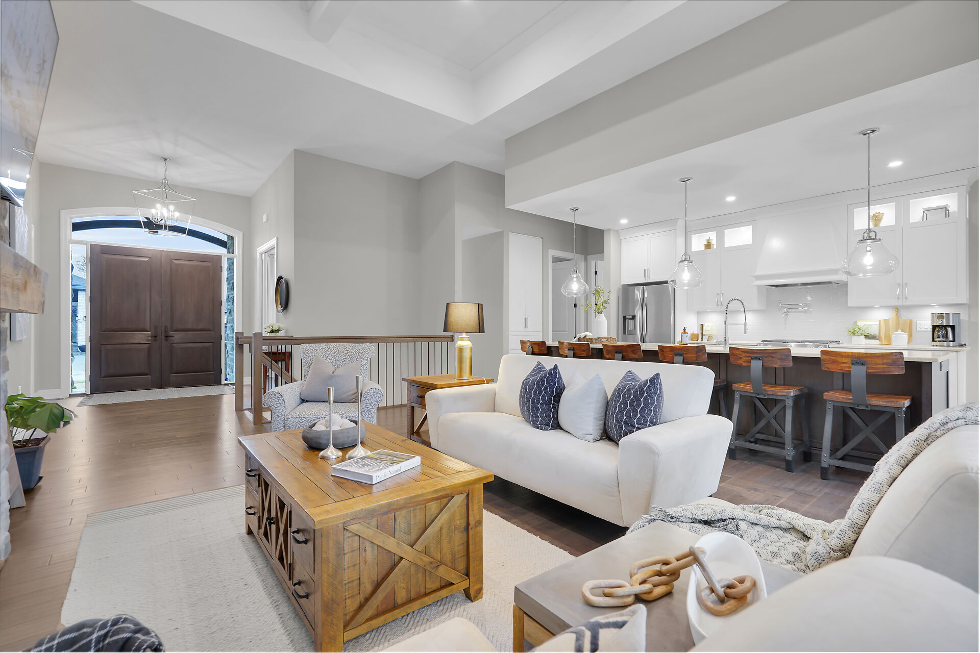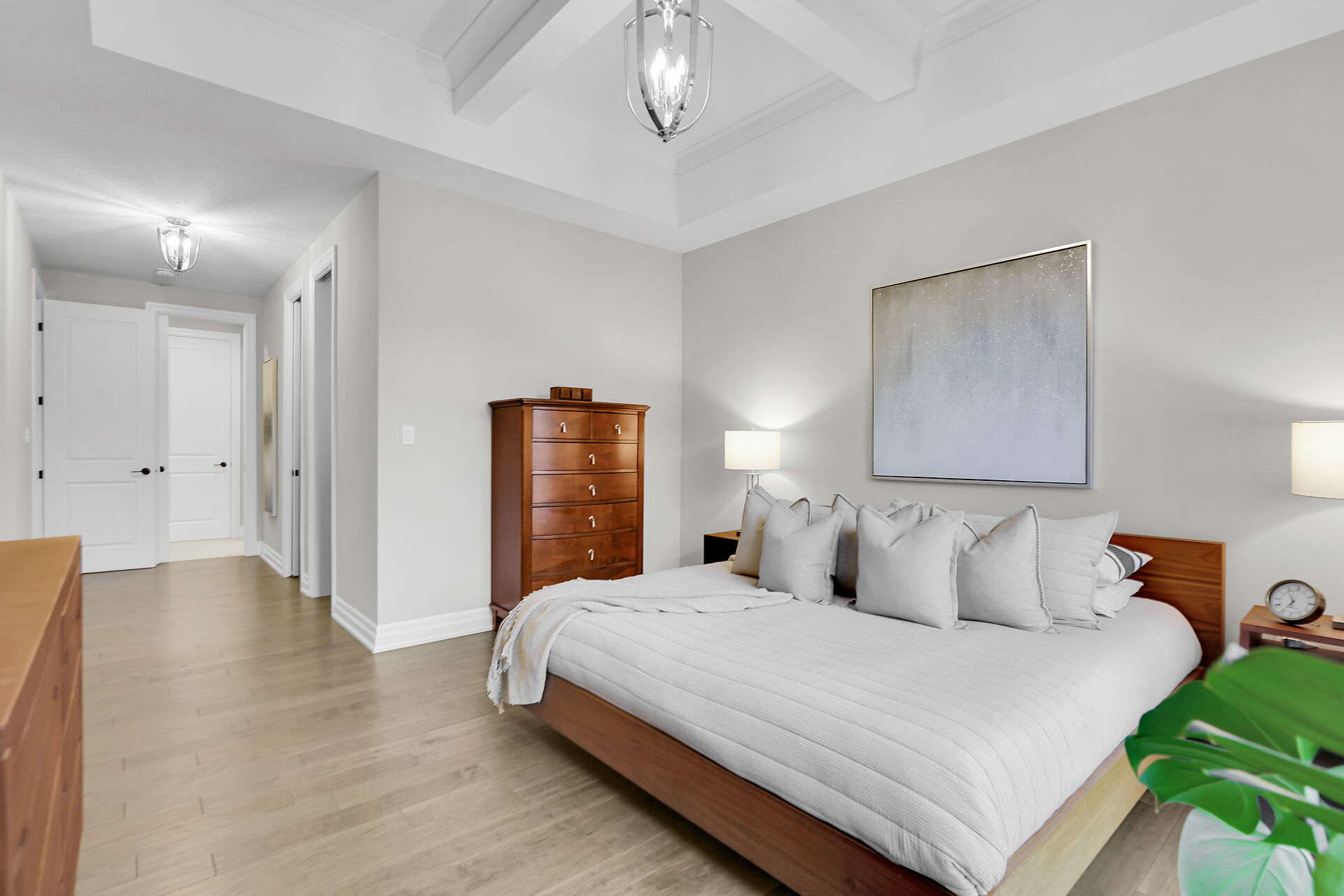 Welcome to this stunning bungalow located in the prestigious and private community of Bella Lago. This meticulously designed 3-bedroom, 4-bathroom Werrington home is in pristine, like-new condition and features numerous high-end upgrades throughout. As you step inside, you are immediately greeted by soaring 14-foot coffered ceilings and oversized, floor-to-ceiling windows that allow for plenty of natural light to flood the space. The home's tasteful décor and attention to detail are evident in every room, making it a true showstopper. The heart of the home is the gorgeous kitchen, which boasts an oversized island, perfect for both cooking and entertaining. The designer kitchen seamlessly flows into the great room.