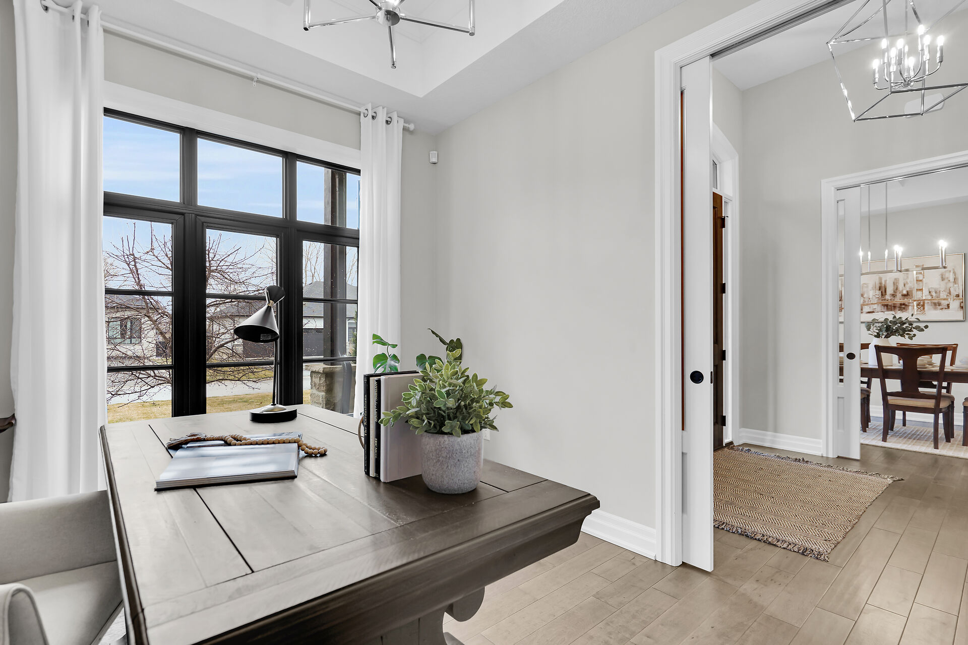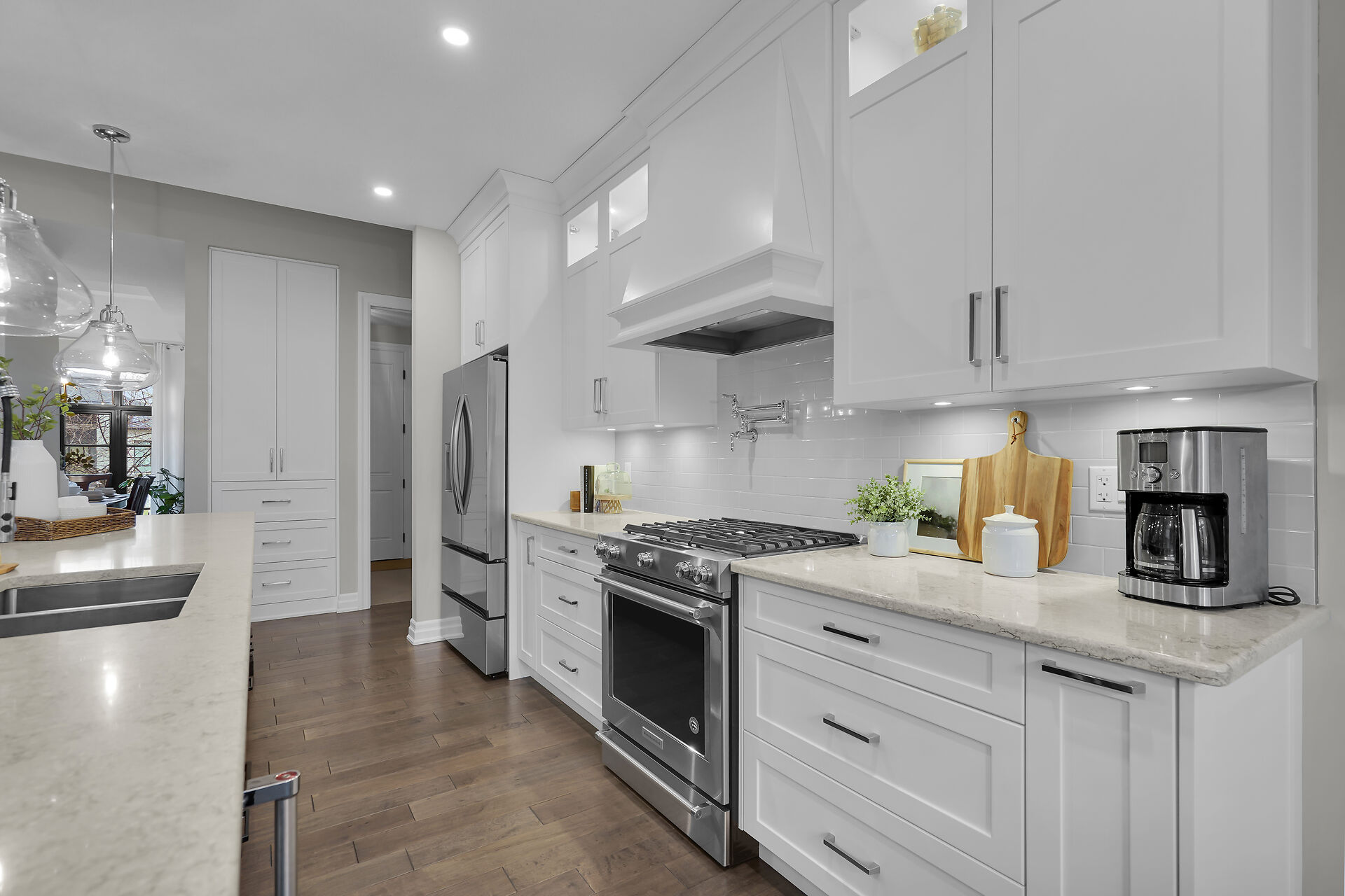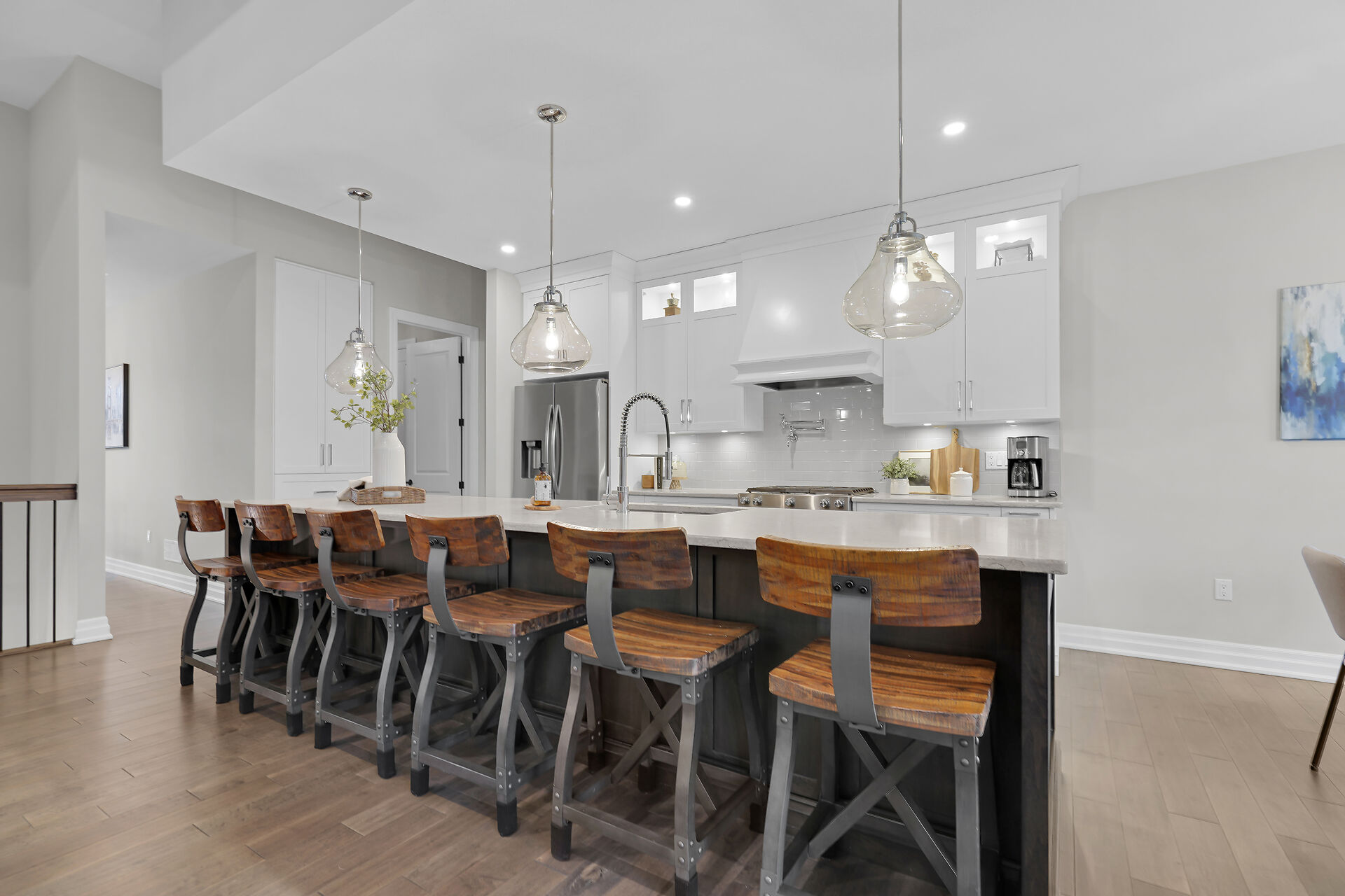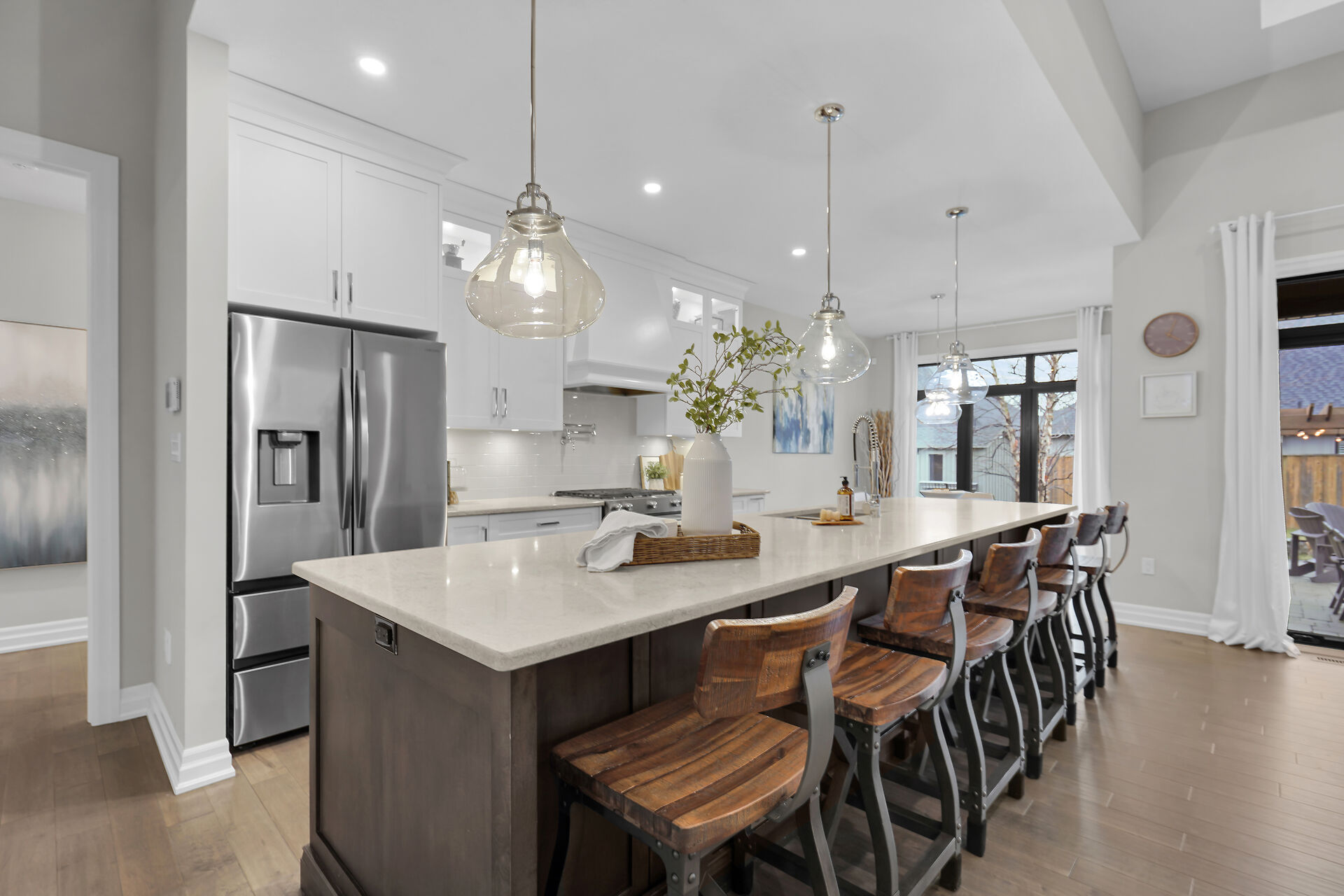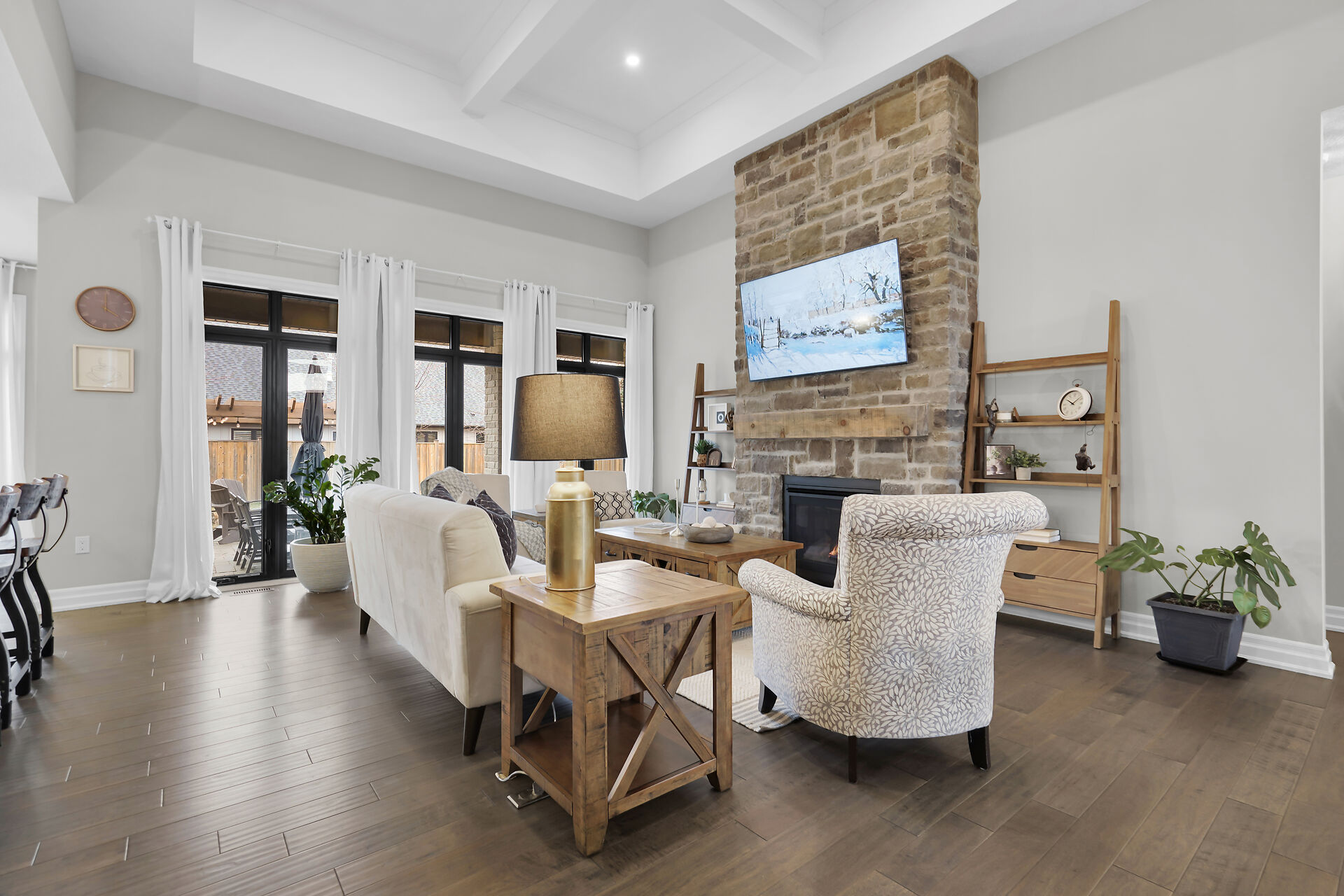 Welcome to this stunning bungalow located in the prestigious and private community of Bella Lago. This meticulously designed 3-bedroom, 4-bathroom Werrington home is in pristine, like-new condition and features numerous high-end upgrades throughout. As you step inside, you are immediately greeted by soaring 14-foot coffered ceilings and oversized, floor-to-ceiling windows that allow for plenty of natural light to flood the space. The home's tasteful décor and attention to detail are evident in every room, making it a true showstopper. The heart of the home is the gorgeous kitchen, which boasts an oversized island, perfect for both cooking and entertaining. The designer kitchen seamlessly flows into the great room.