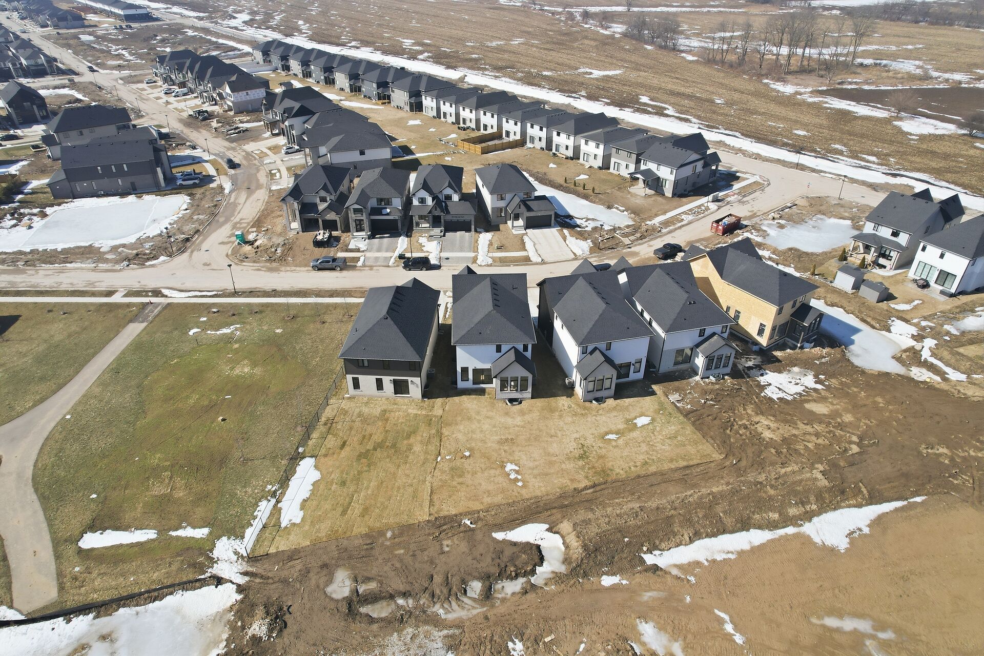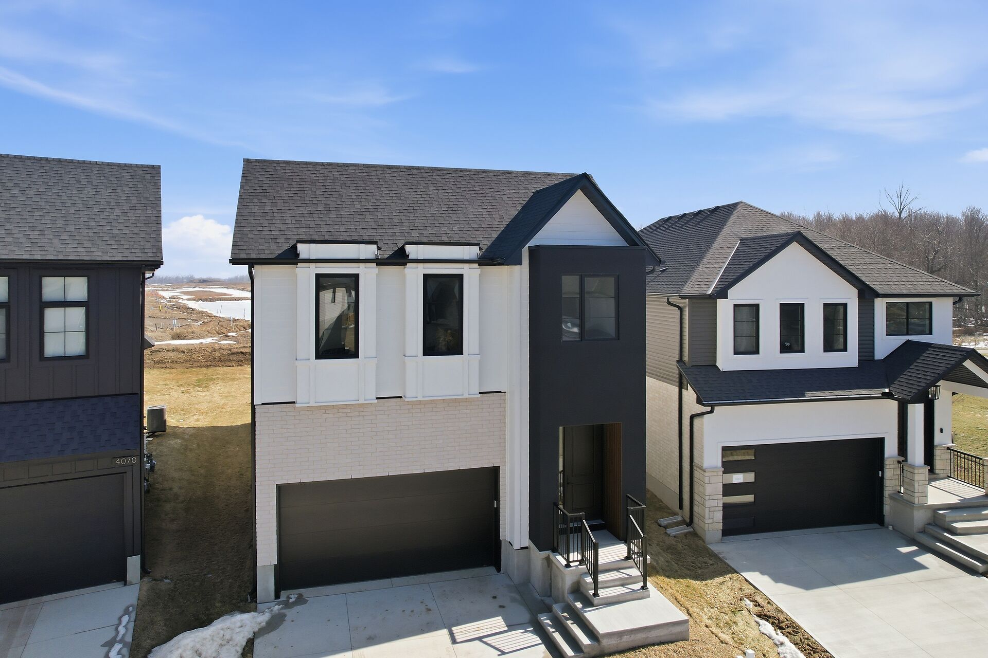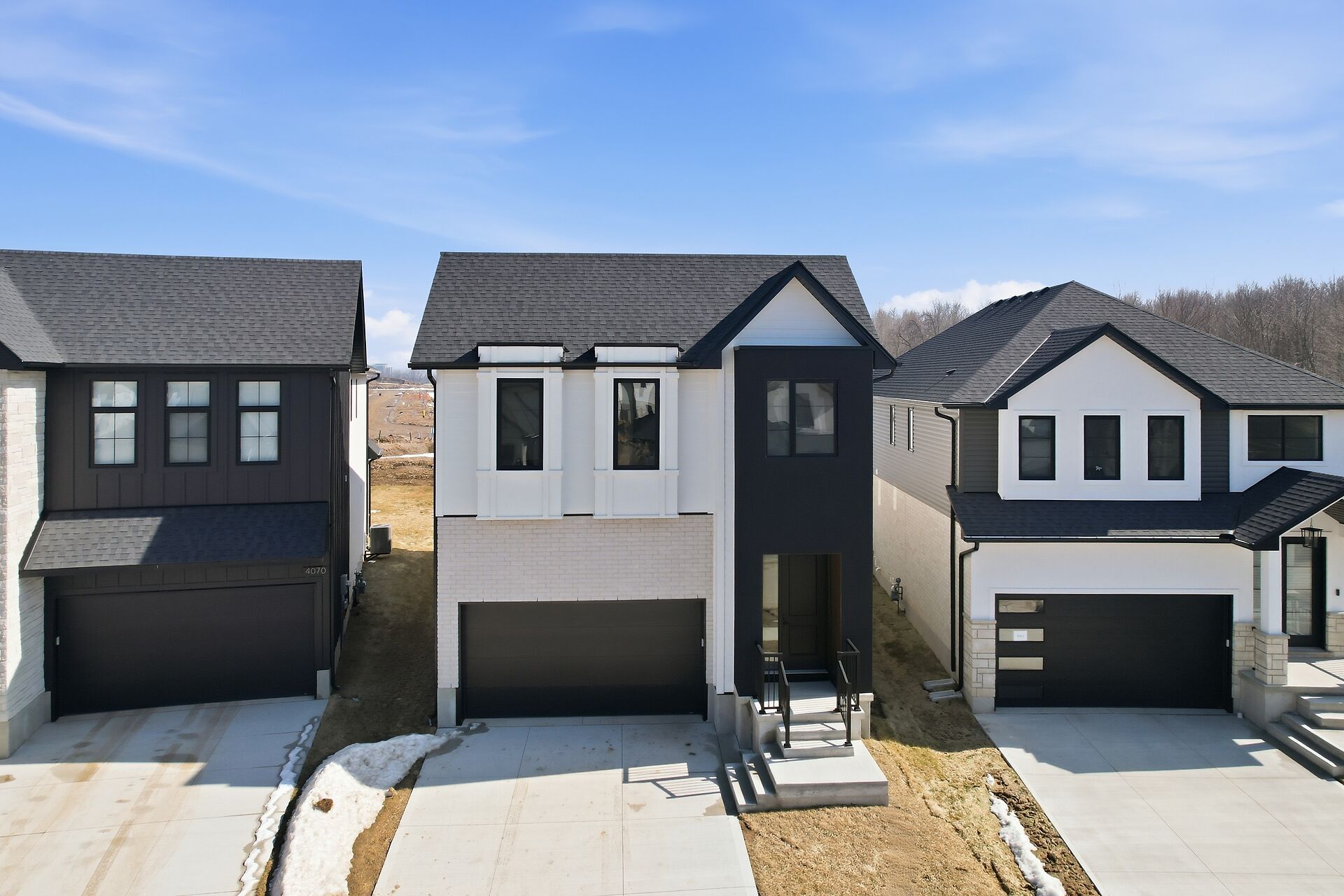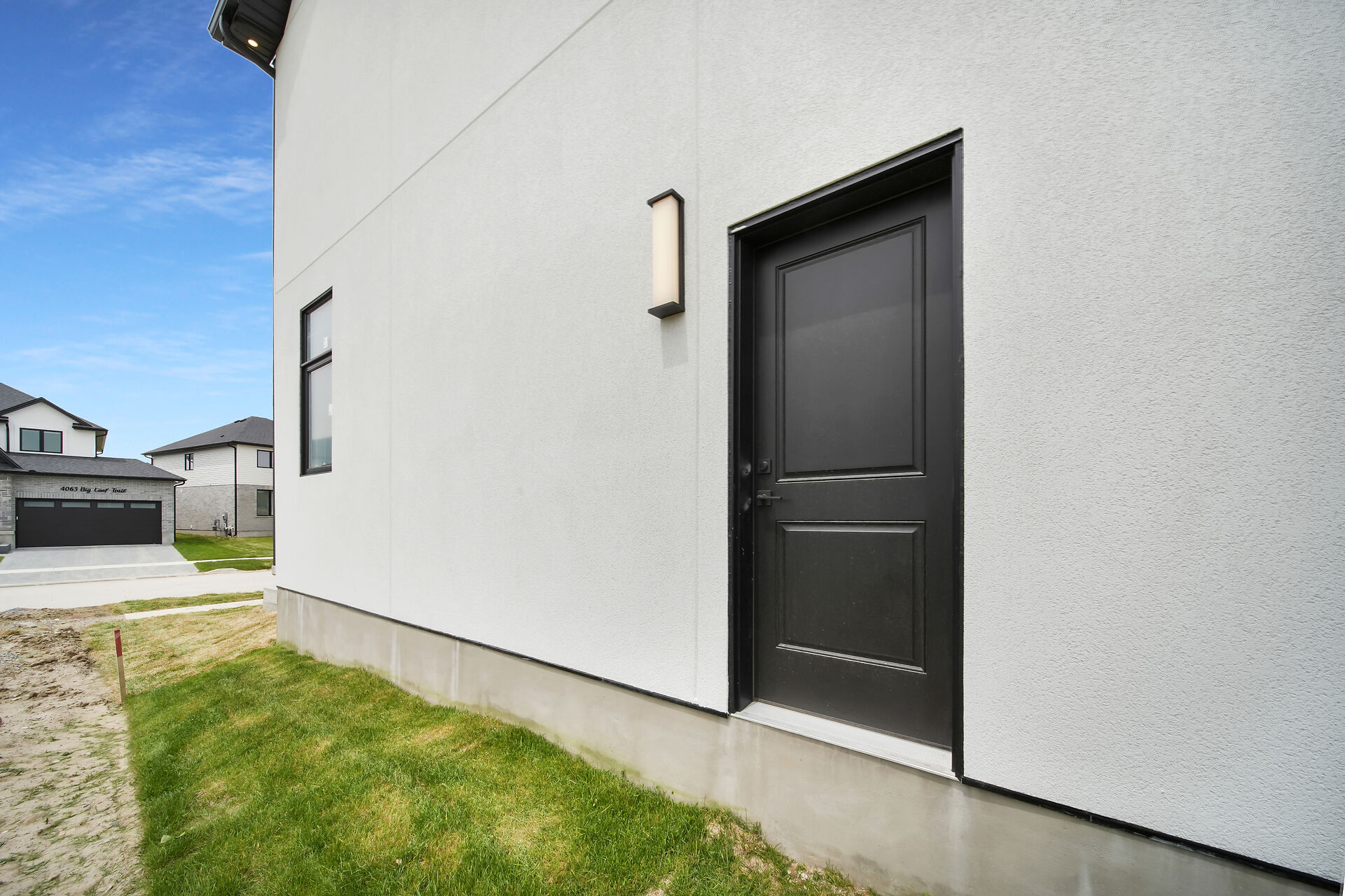 Quick Closing Available! Welcome to 4068 Big Leaf Trail, located in sought-after Magnolia Fields community in Lambeth. This impressive Scobey plan by Blackrail Homes Inc. offers 2,362 sq ft of designed living space. Step inside to discover 10-foot ceilings on the main & 9-foot ceilings on the second, along with elegant details like arched doorways, hardwood flooring, & a oak staircase. The spacious great room features a sleek modern fireplace & flows effortlessly into the designer kitchen, complete with a walk-in butlers pantry. A separate side entrance leads directly to the basement, offering potential for future development or an in-law suite. Upstairs, you'll find 4 spacious bedrooms, & convenient laundry room