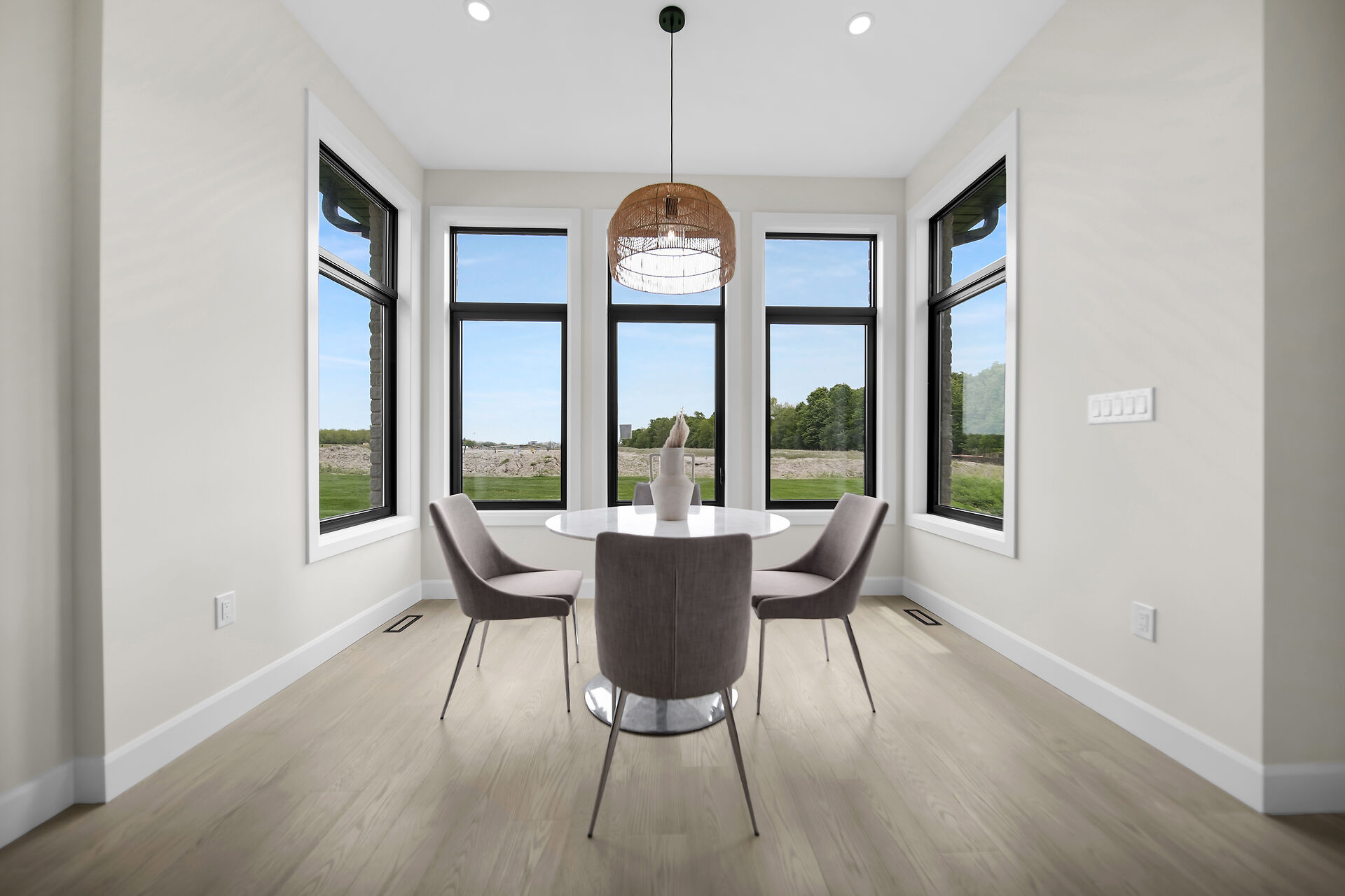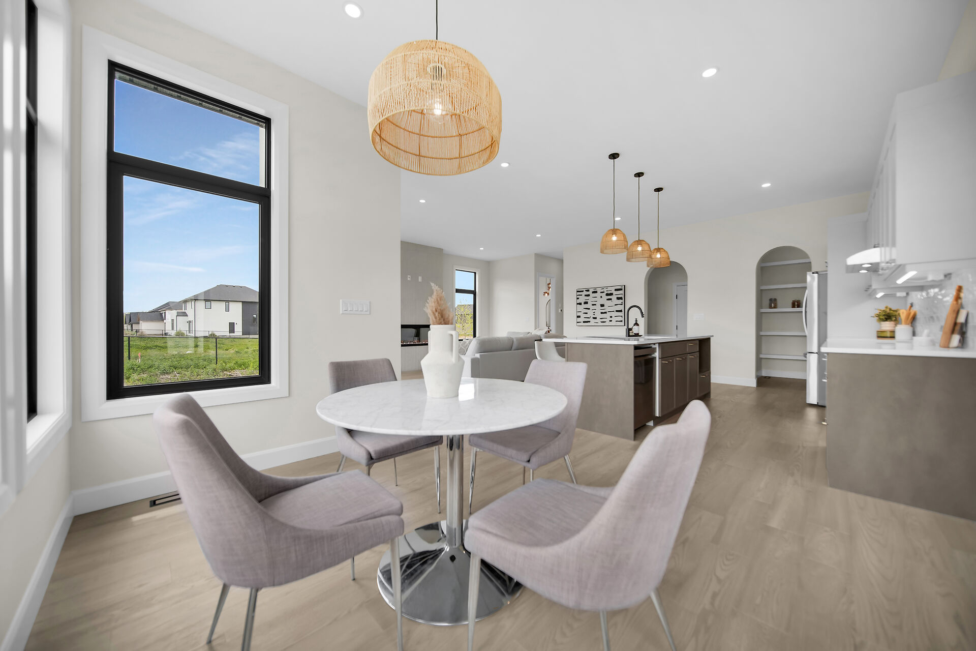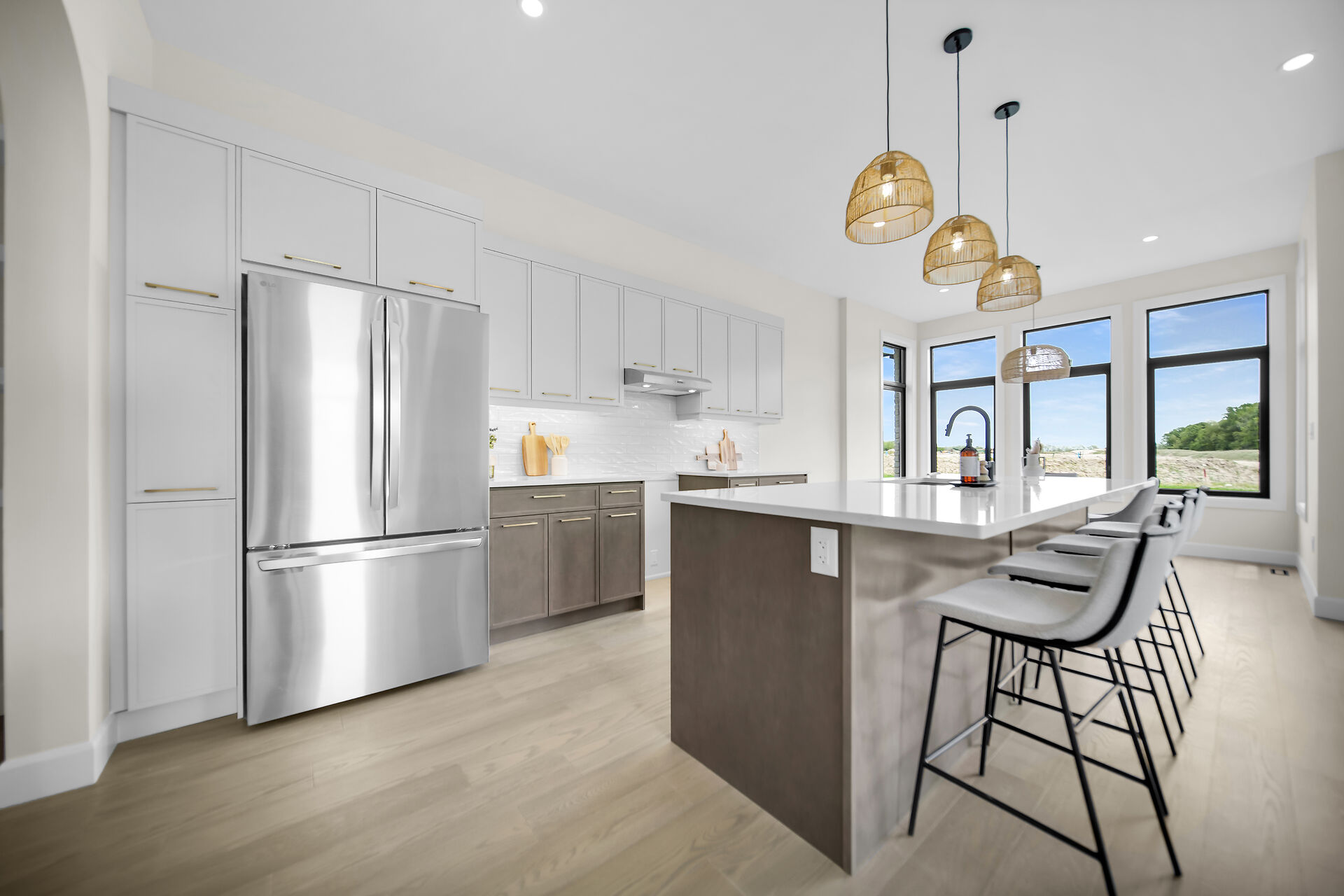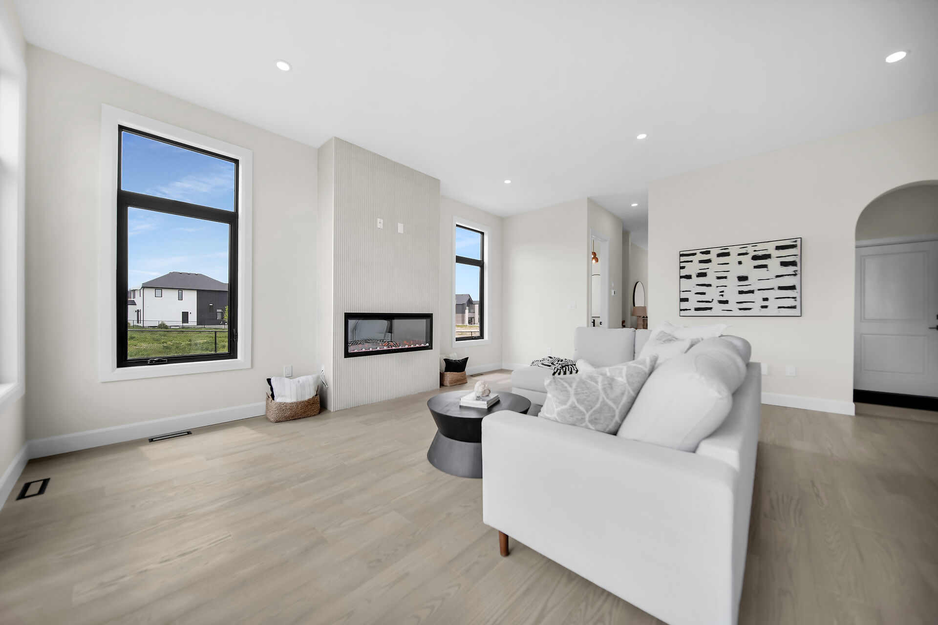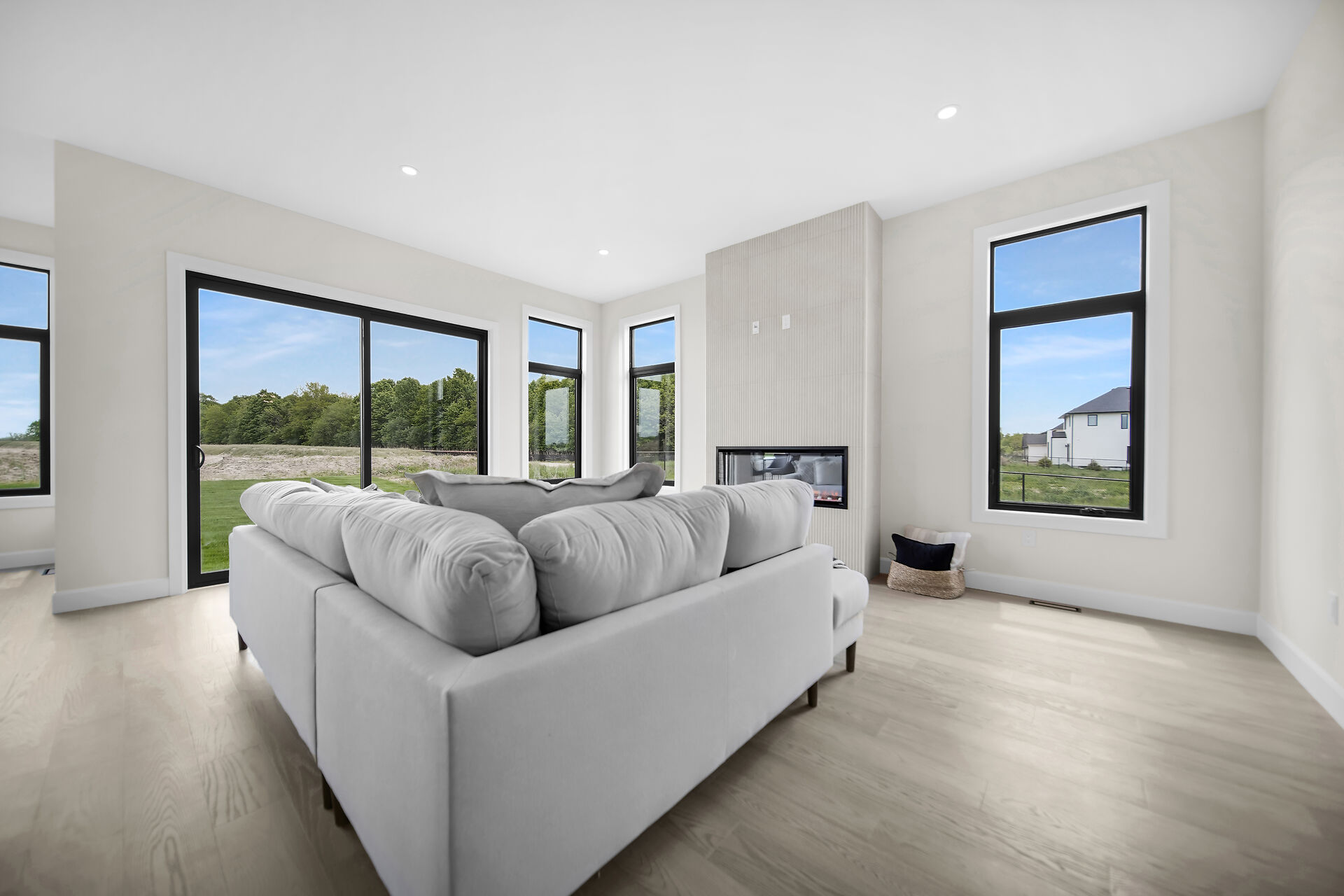 Quick Closing Available! Welcome to 4068 Big Leaf Trail, located in sought-after Magnolia Fields community in Lambeth. This impressive Scobey plan by Blackrail Homes Inc. offers 2,362 sq ft of designed living space. Step inside to discover 10-foot ceilings on the main & 9-foot ceilings on the second, along with elegant details like arched doorways, hardwood flooring, & a oak staircase. The spacious great room features a sleek modern fireplace & flows effortlessly into the designer kitchen, complete with a walk-in butlers pantry. A separate side entrance leads directly to the basement, offering potential for future development or an in-law suite. Upstairs, you'll find 4 spacious bedrooms, & convenient laundry room