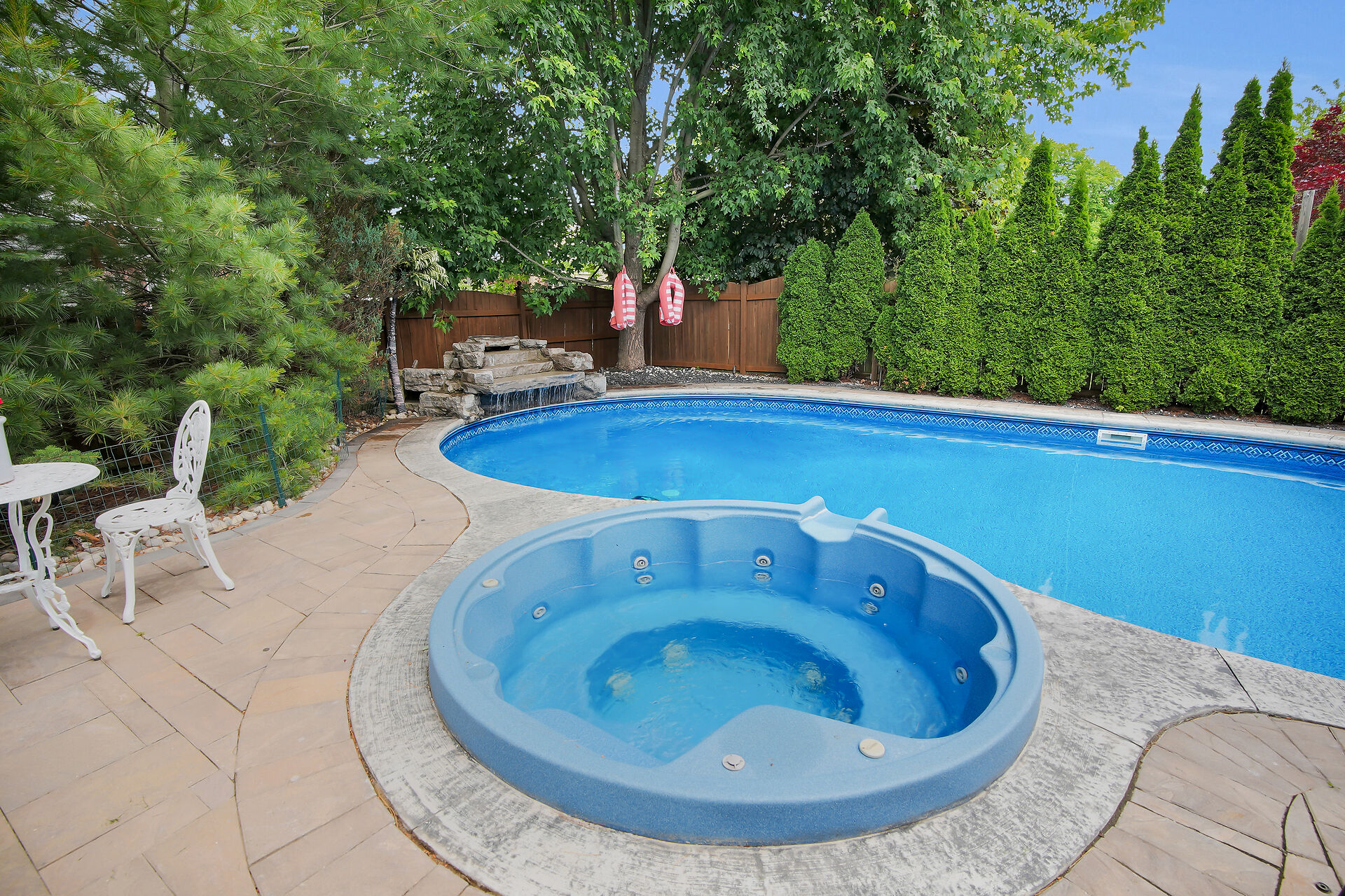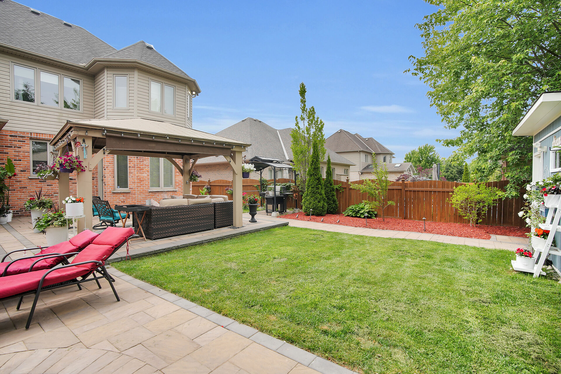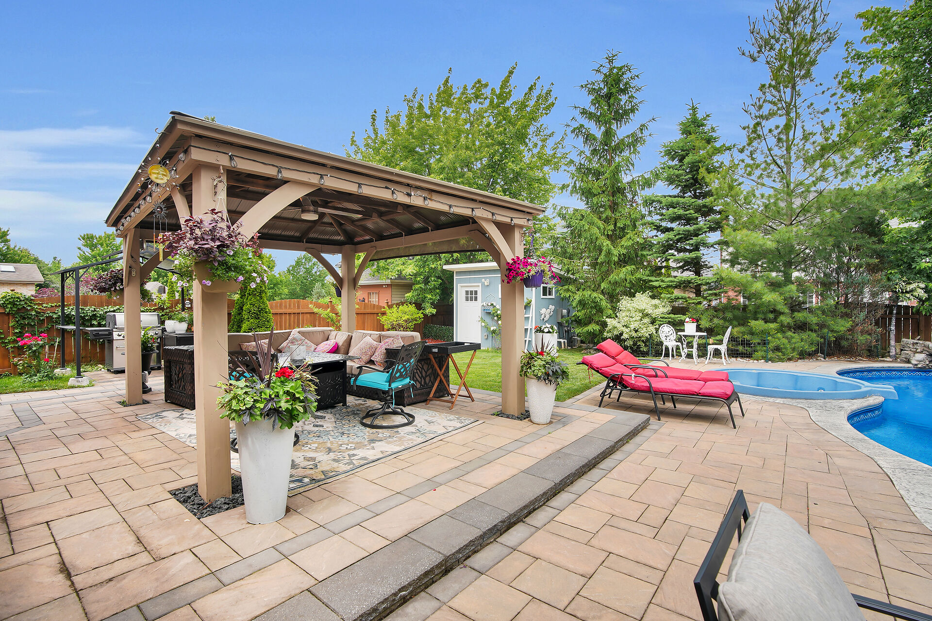 Welcome to this Wasko home in a much sought-after North London neighbourhood. This move-in-ready home offers great curb appeal, spacious principal rooms, vaulted ceilings, and large windows for natural light. The family room features a gas fireplace and built-in speakers throughout the home. The kitchen includes built-in appliances. The finished lower level offers a large rec room, two bedrooms, and a full bath. Outside is a private backyard oasis with an in-ground pool, jetted spa, waterfall, pool house with full amenities, and mature trees. Recent updates include a new pool pump and robot vacuum (2025). Enjoy paver stone patio, a gazebo, BBQ hut, and a hard-wired security system. Call realtor for a full list.