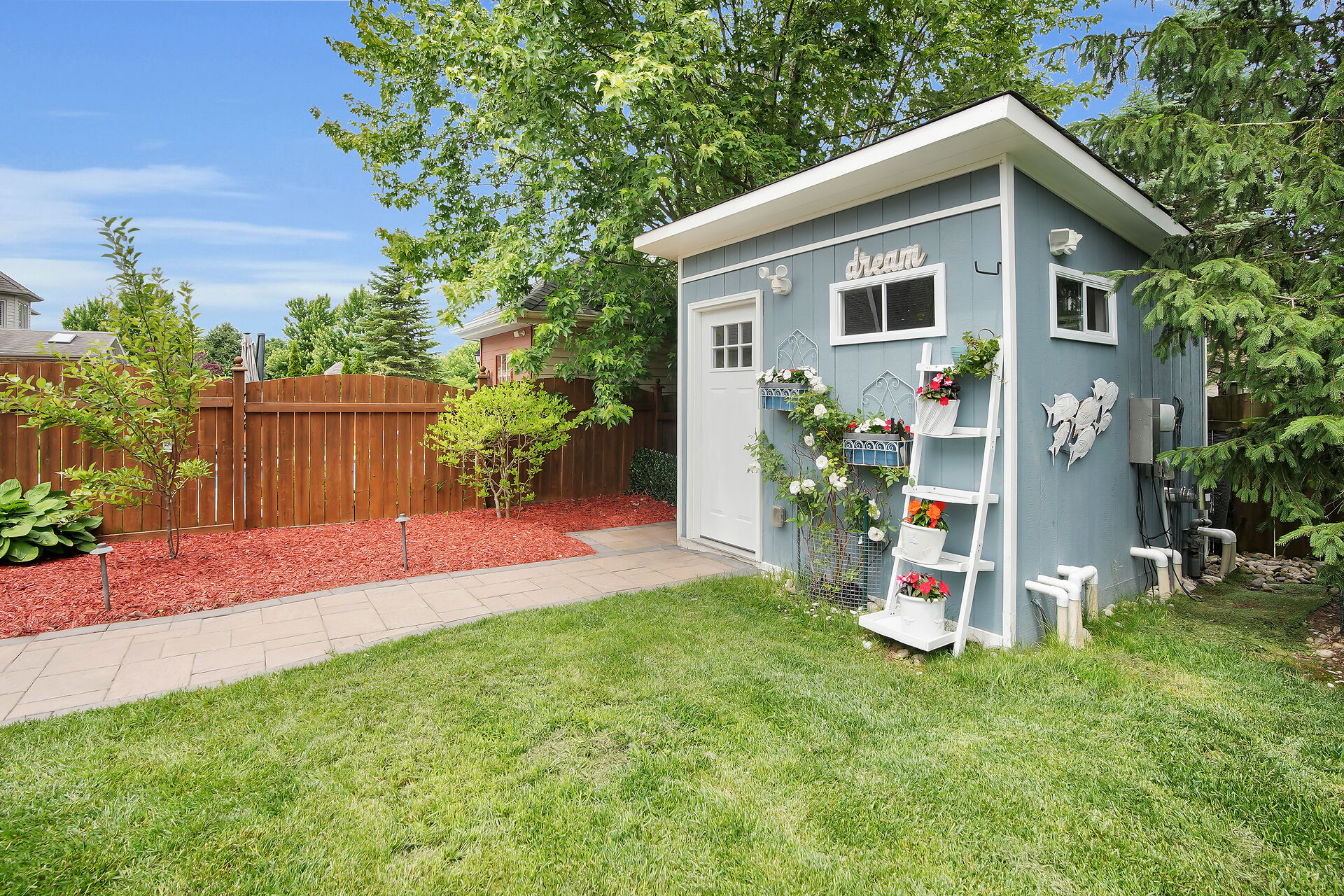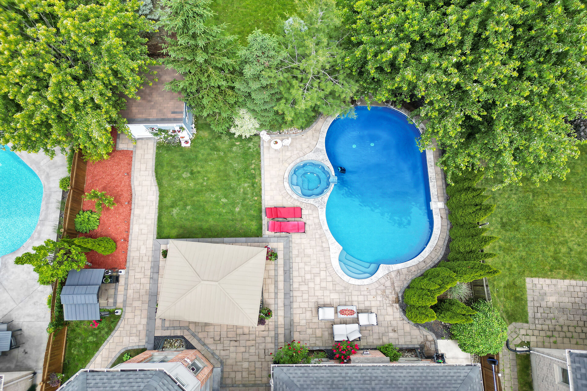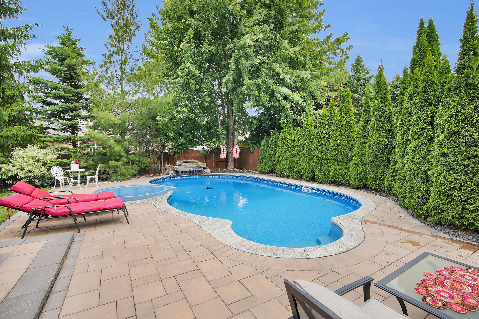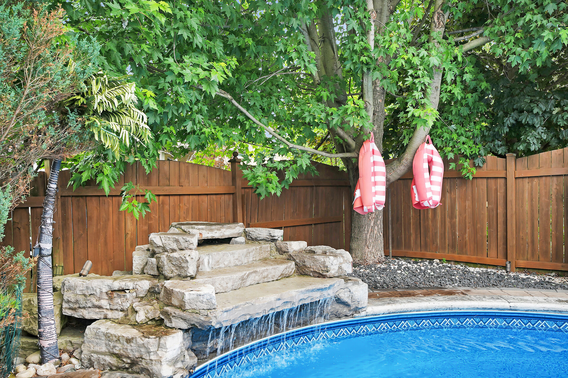 Welcome to this Wasko home in a much sought-after North London neighbourhood. This move-in-ready home offers great curb appeal, spacious principal rooms, vaulted ceilings, and large windows for natural light. The family room features a gas fireplace and built-in speakers throughout the home. The kitchen includes built-in appliances. The finished lower level offers a large rec room, two bedrooms, and a full bath. Outside is a private backyard oasis with an in-ground pool, jetted spa, waterfall, pool house with full amenities, and mature trees. Recent updates include a new pool pump and robot vacuum (2025). Enjoy paver stone patio, a gazebo, BBQ hut, and a hard-wired security system. Call realtor for a full list.