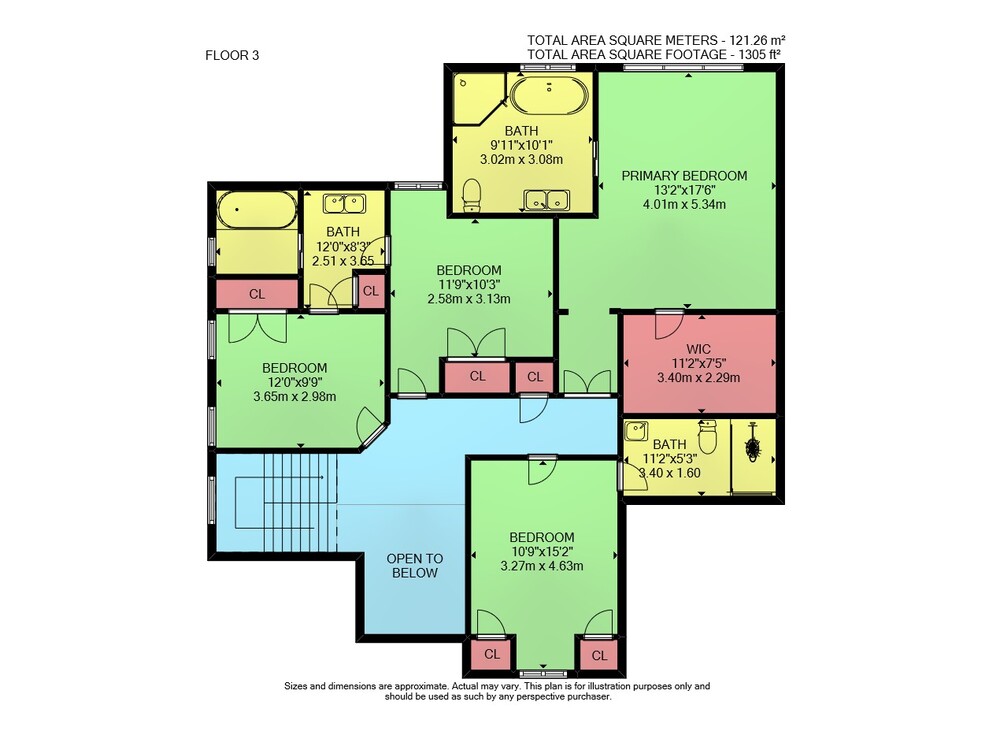 Floor 2: 1360 sq ft, Floor 3: 1305 sq ft,