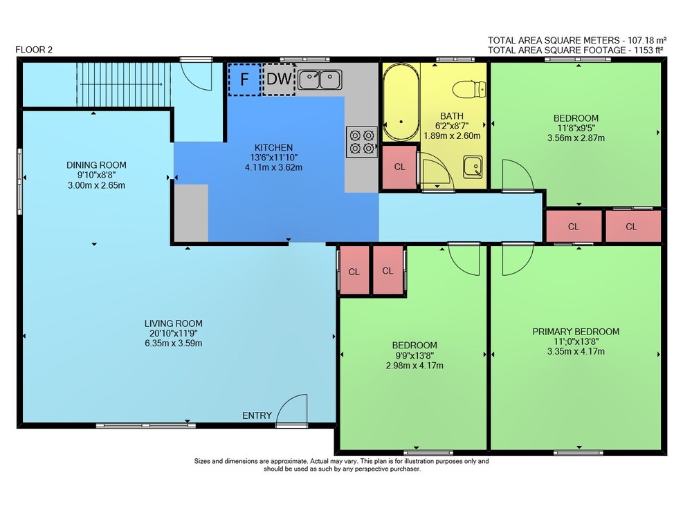 Floor 2: 1153 sq ft, Floor 1: 1102 sq ft