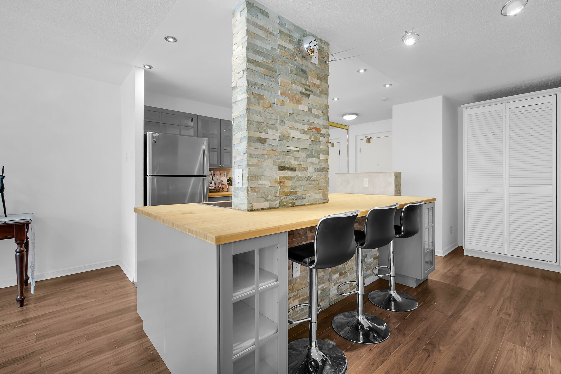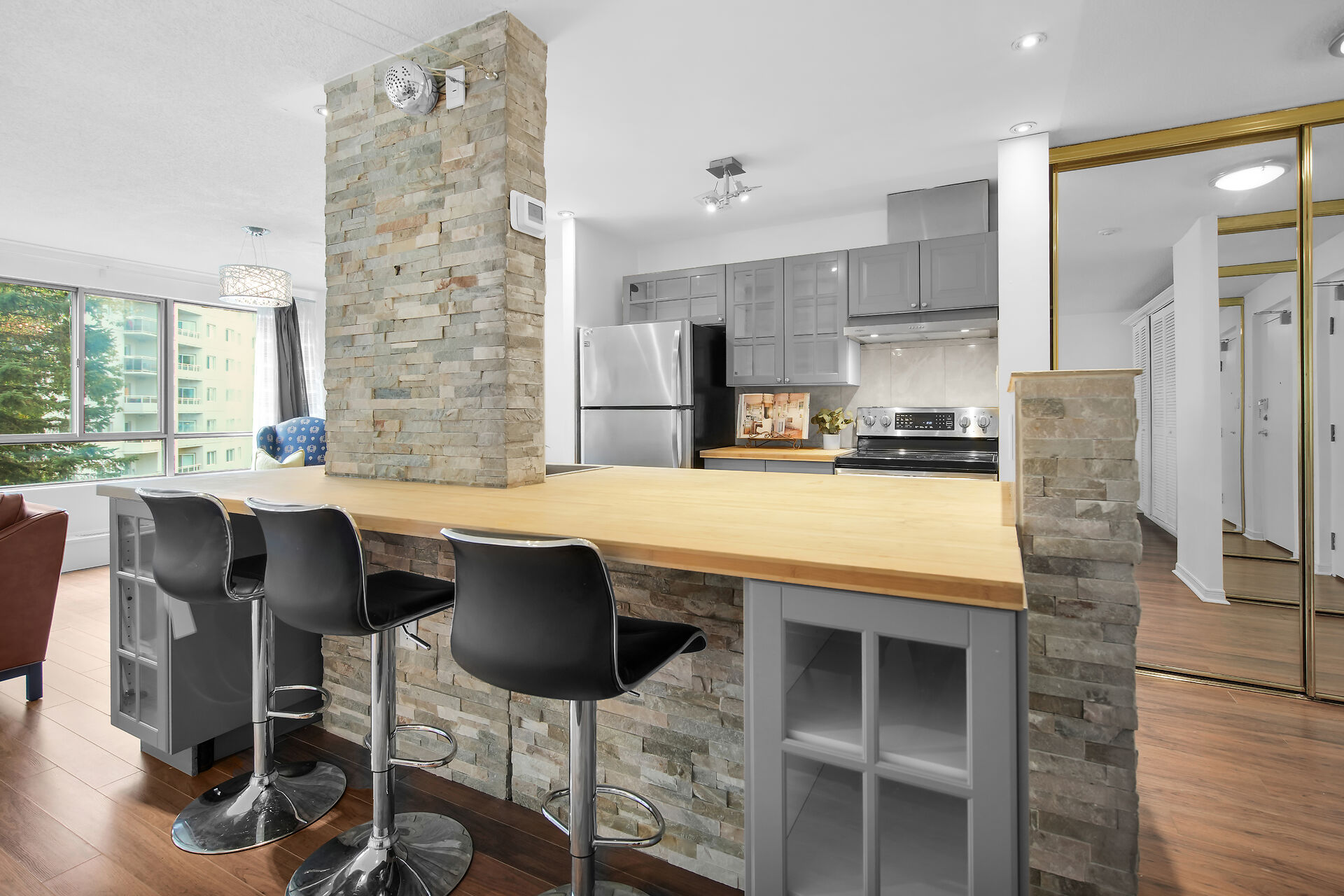 Welcome to #407 - 570 Proudfoot Lane, ideally located just minutes from downtown London and UWO. This lovely, fully renovated suite offers one spacious bedroom and an elegant 4pc bathroom, in-suite laundry and desirable open concept living, with a contemporary upgraded kitchen; including stainless steel appliances and convenient breakfast bar, as well as a cozy living/dining space with large windows featuring picturesque views of mature trees and allowing loads of nature light. Great access to public transportation and walking distance to many great amenities-- including grocery stores, shopping plazas, restaurants and coffee shoppes.