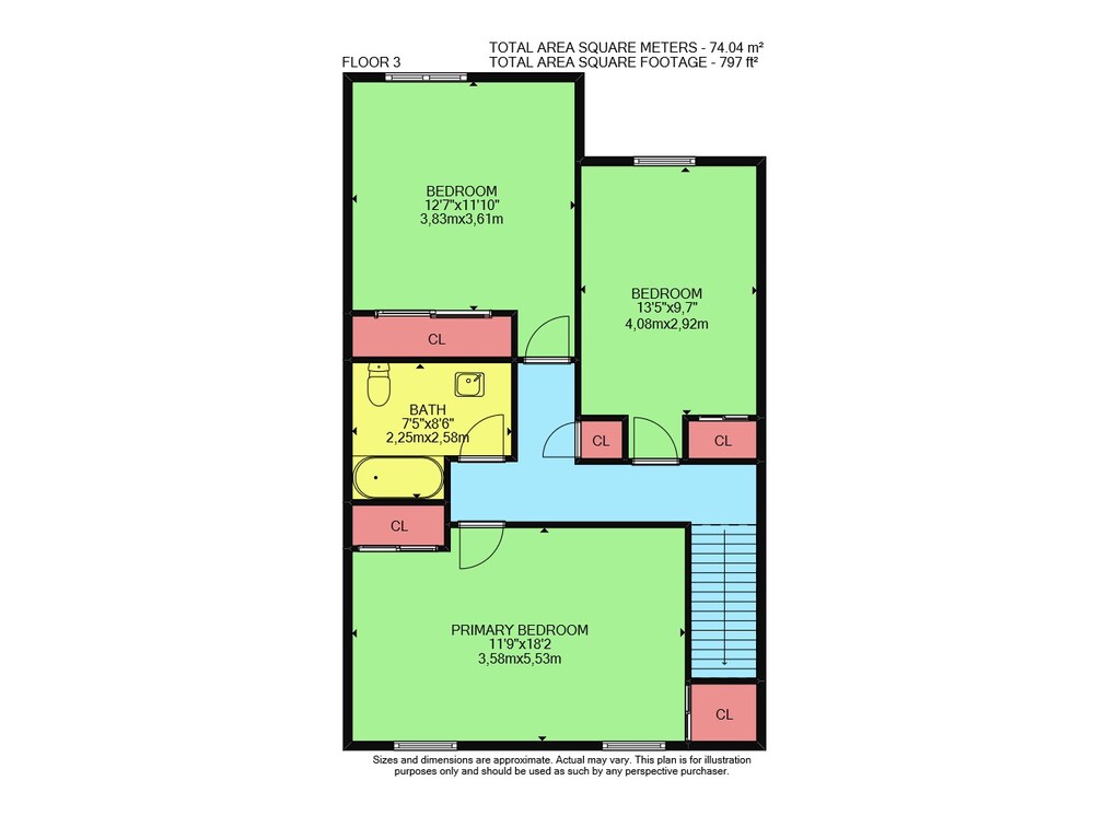 Floor 3: 797 sq ft