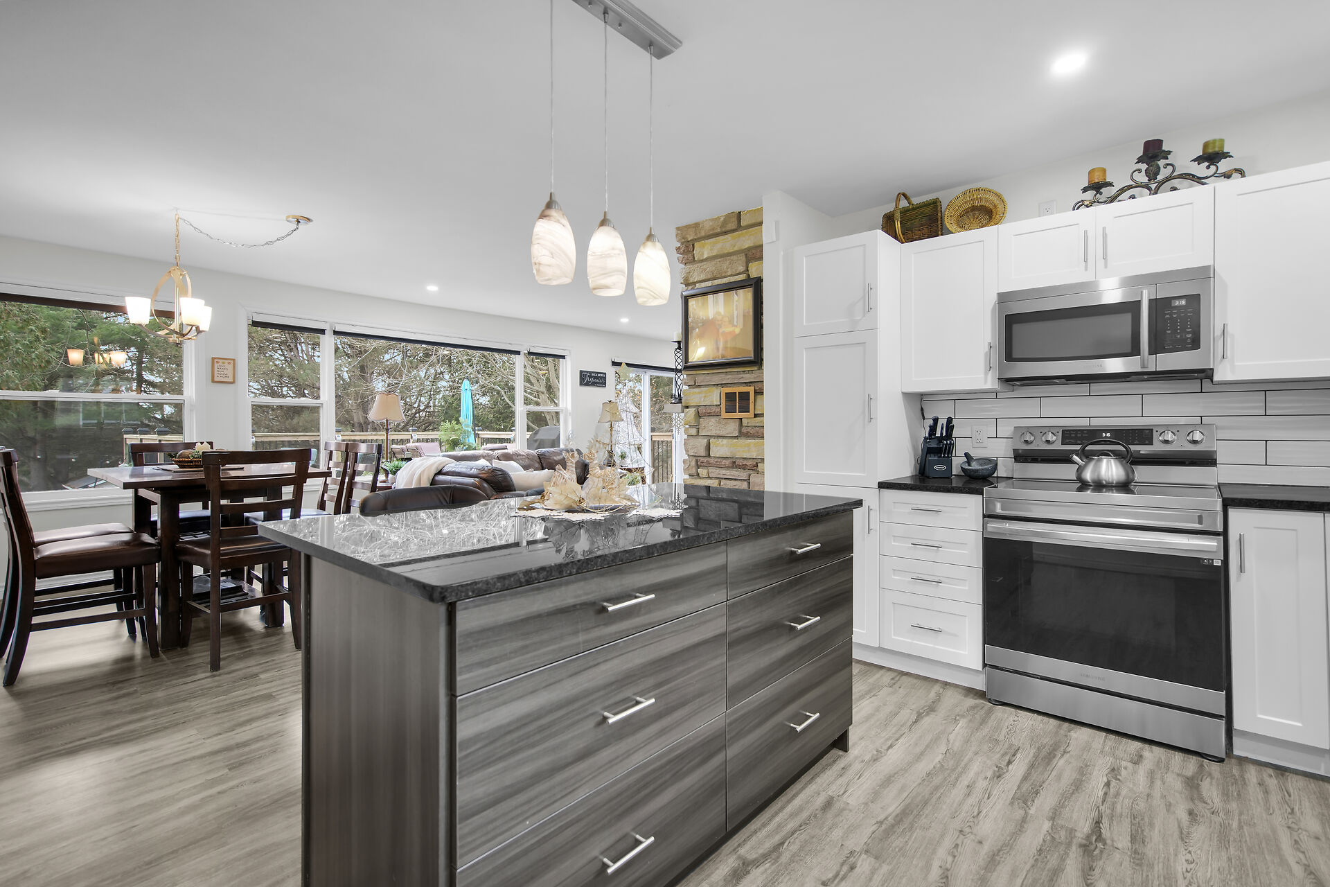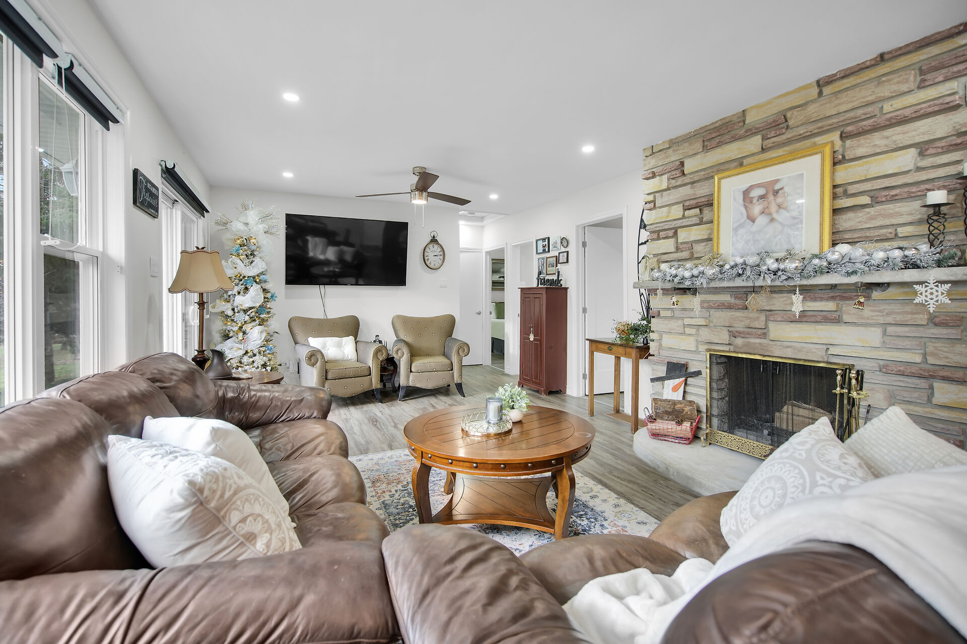 Welcome to your charming lakefront property on the tranquil shores Fanshawe Lake. Situated within a conservation park on affordable leased land with low taxes, this home offers a serene retreat from the hustle and bustle of everyday life. The solid 3-bedroom bungalow has been lovingly updated throughout, featuring an attached garage (2023), an open concept main floor complete with a stunning stone fireplace, modern kitchen and stylish island. Step outside onto your private back deck to relish nature and the lakefront - ideal for paddling, canoeing, kayaking, or leisurely strolls along scenic nature trails. Siding (2023), furnace/AC (2020), upgraded insulation (2020), concrete driveway (2025).