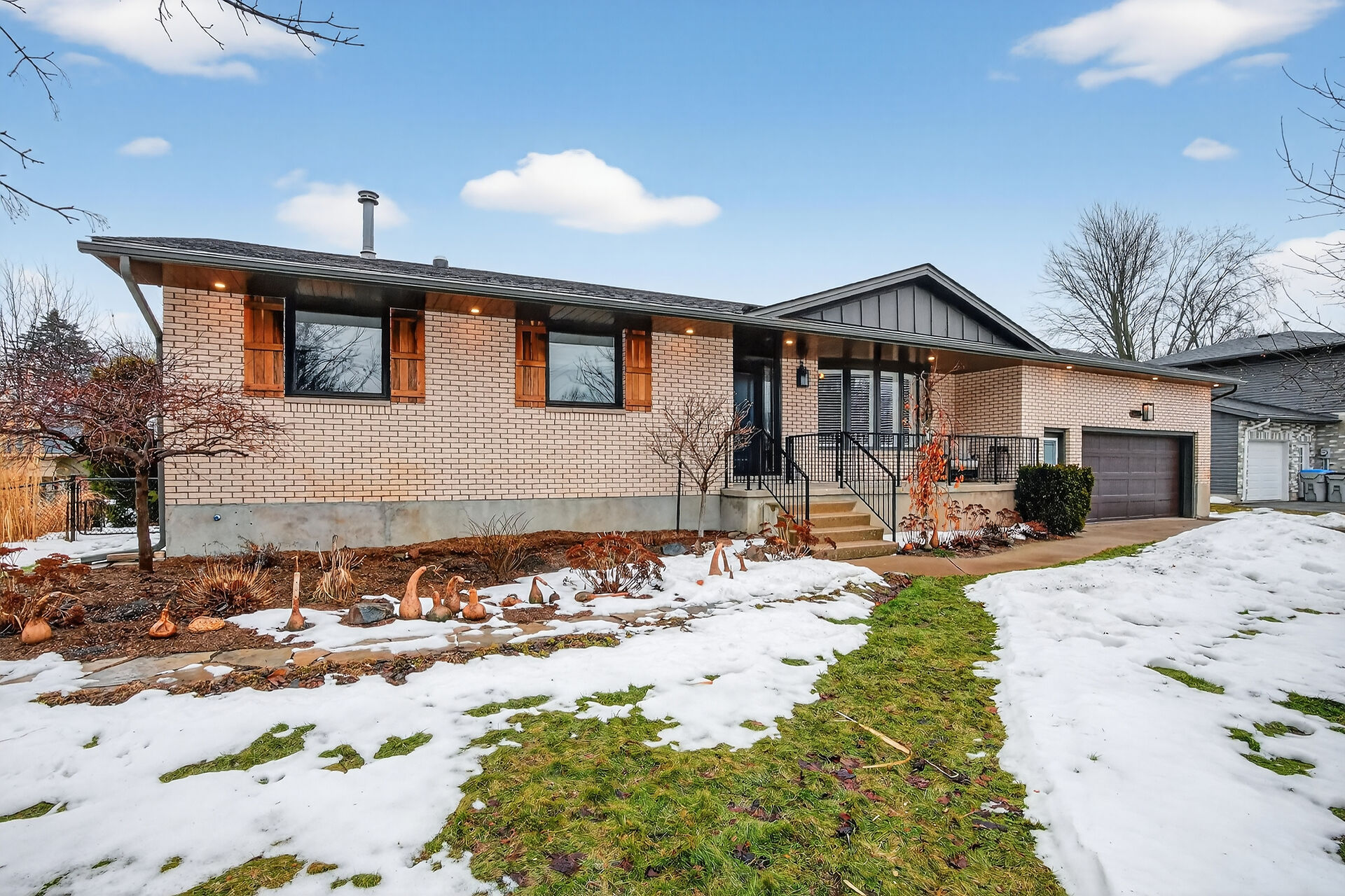 One-of-a-kind 3 bedroom, 3 bath ranch where sophisticated country design meets thoughtful craftsmanship on a deep, park-like lot. From the custom foyer with live edge bench to the chef's dream Cardinal kitchen (2021) with wood grain cabinetry & open shelving, quality is found throughout. The main bathroom features a steam shower, while the primary ensuite boasts granite finishes. The lower level offers a spacious rec room with gas fireplace, 3-piece bath, & bonus room offering endless possibilities. Unwind on the 26' x 15' deck with powered awning overlooking private fenced yard with raised gardens, cedar hedge, irrigation system & sand point well. 2 car oversized garage too. Enjoy small town charm in Mt. Brydges.