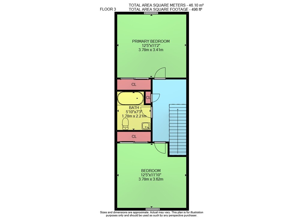 Floor 2: 473 sq ft, Floor 3: 496 sq ft, Floor 1: 461 sq ft