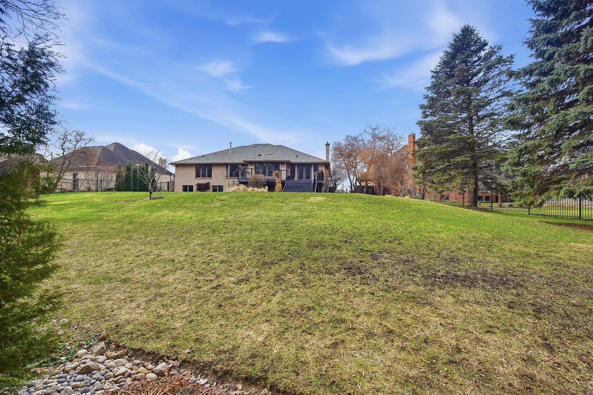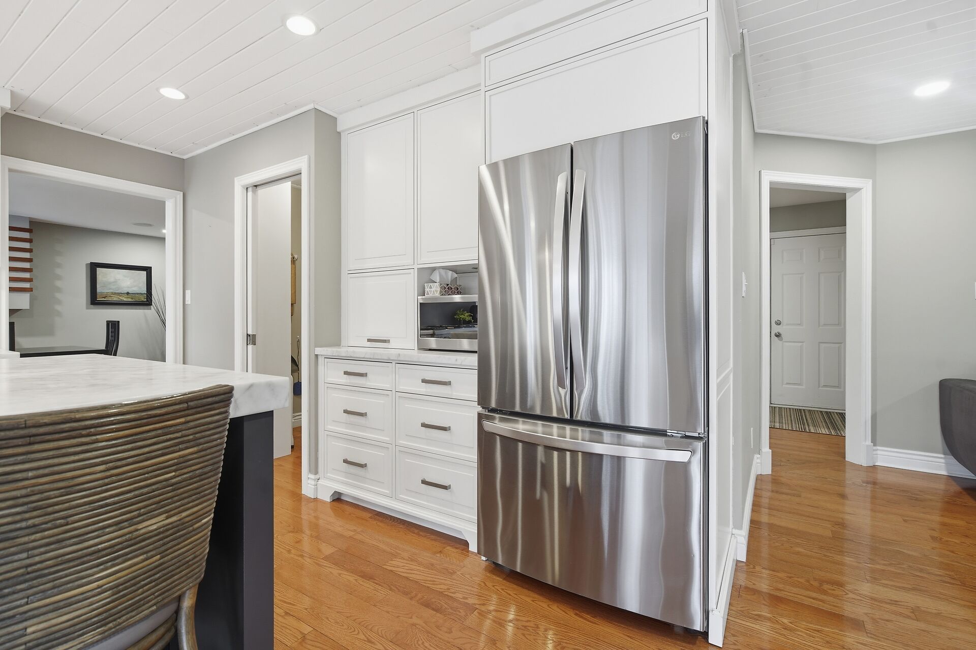 Welcome to 28 Wynfield Lane, an exceptional ranch-style residence set on a private half-acre lot backing onto mature forest in the prestigious Wynfield Estates, mere minutes from north-west London. Surrounded by estate-sized homes and natural beauty, this property offers an ideal blend of refined community living and peaceful privacy. This beautifully updated 3+1 bedroom home features a thoughtfully designed layout with spacious principal rooms and hardwood flooring throughout the main level. The heart of the home is the open-concept chef's kitchen, showcasing marble countertops, a massive centre island, premium appliances, and an impressive walk-in pantry—perfect for both everyday living and entertaining.